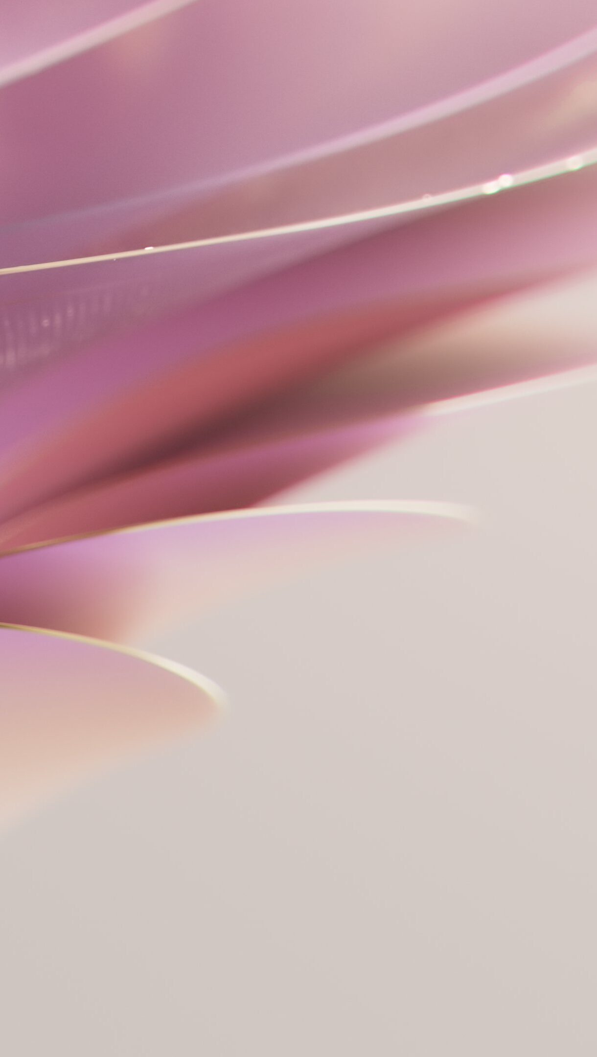 A serene 4K wallpaper unveiling elegant pink abstract waves, gracefully layered and unfolding from the left. These soft, flowing forms are subtly edged with shimmering golden lines, creating a sophisticated and harmonious visual flow.