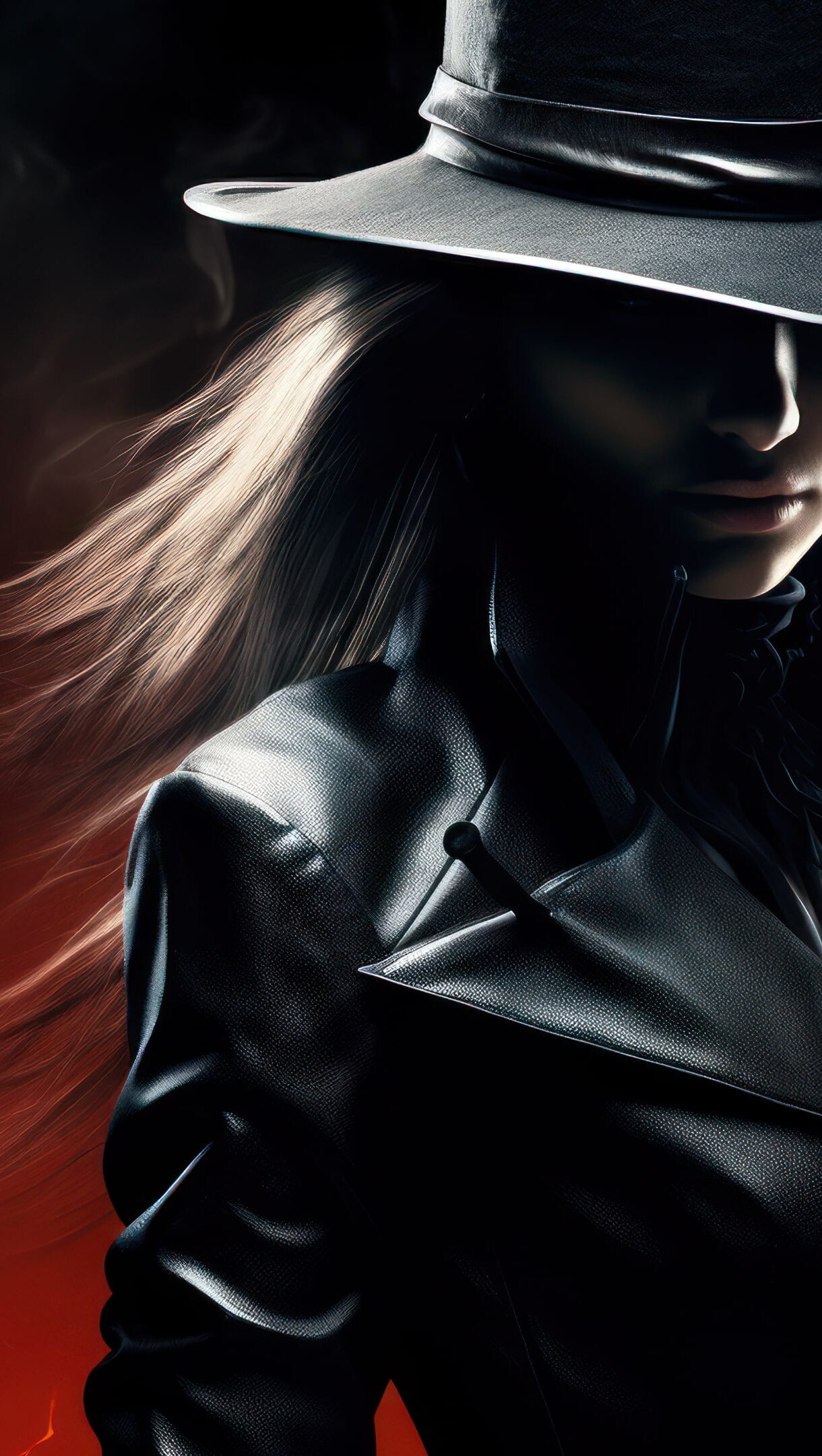 A captivating 4K wallpaper portraying a stylized depiction of a female Jack the Ripper figure. This AI-generated artwork combines mystery and intrigue, showcasing a hauntingly alluring yet enigmatic character against a dark, atmospheric backdrop. Simply click the download button to bring this masterpiece to life on your screen as a desktop wallpaper or save it for later in your wallpaper collection.