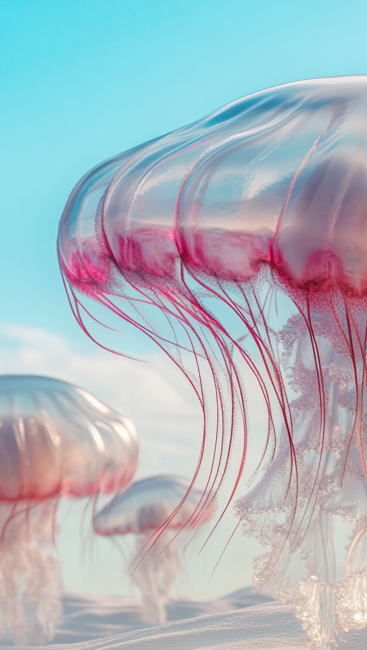 A breathtaking 4K wallpaper featuring a floating giant jellyfish drifting peacefully in the ocean depths. Its translucent body glows softly, illuminating the dark waters with a mystical and surreal aura, creating a tranquil and otherworldly underwater scene. Simply click the download button to bring this masterpiece to life on your screen as a desktop wallpaper or save it for later in your picture collection.