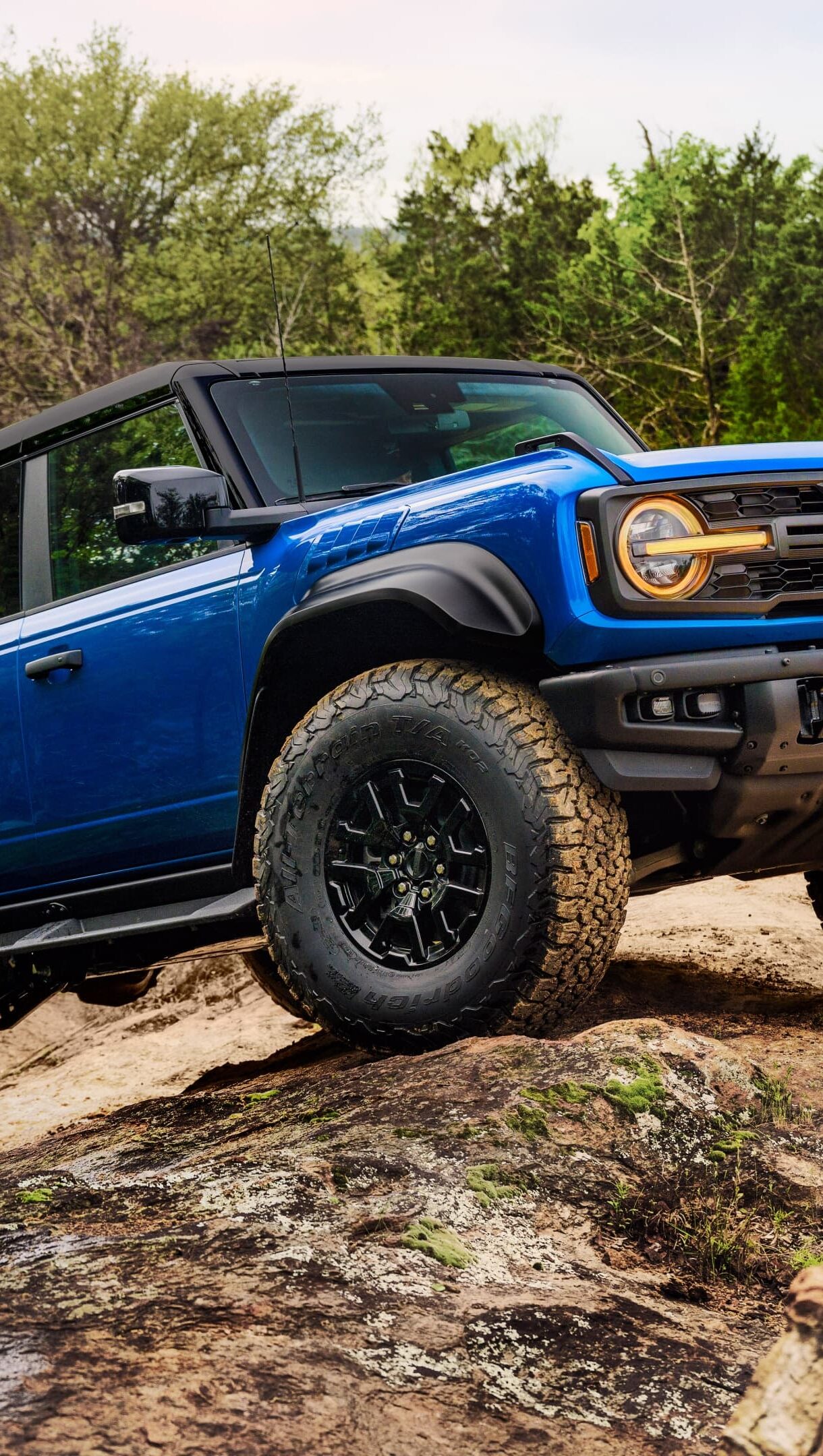 A captivating 4K wallpaper featuring the Ford Bronco Raptor, an iconic off-road SUV, navigating rugged terrain with ease. Simply click the download button to bring this masterpiece to life on your screen as a desktop wallpaper or save it for later in your picture collection.