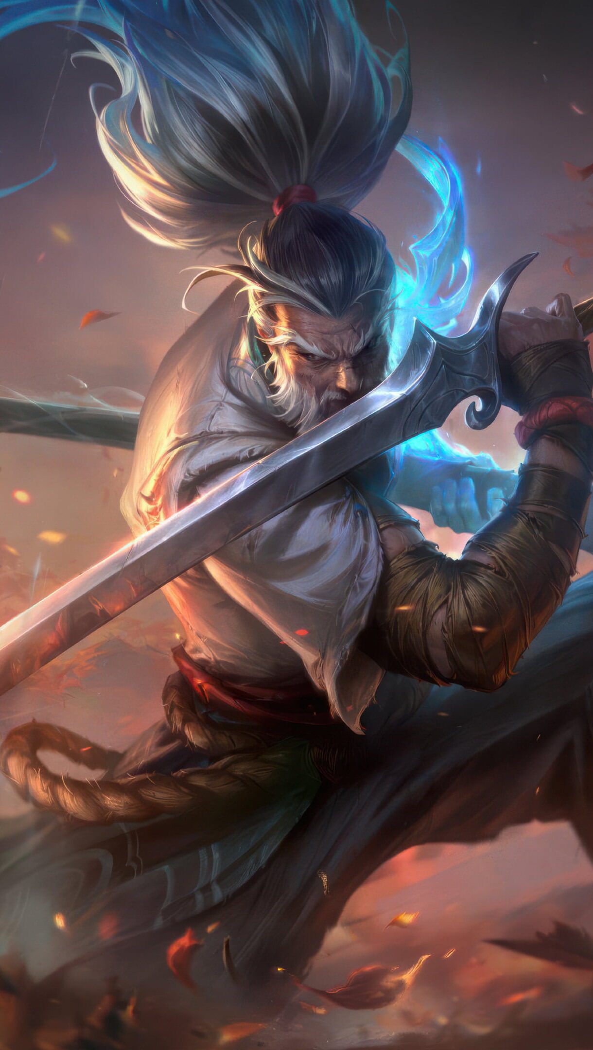 A mesmerizing 4K wallpaper featuring the Foreseen Yasuo skin in League of Legends. Yasuo, the Unforgiven, stands poised and vigilant, surrounded by an ethereal aura that hints at the future and destiny. Simply click the download button to bring this masterpiece to life on your screen as a desktop wallpaper or save it for later in your wallpaper collection.