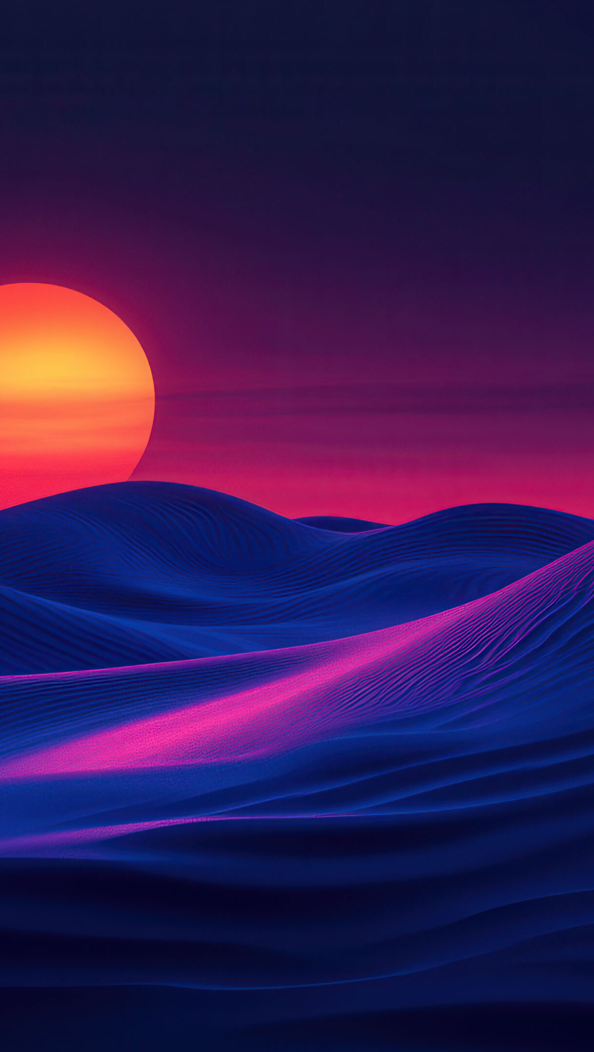A stunning 4K wallpaper featuring futuristic dunes bathed in the radiant glow of a vibrant sunset. The sci-fi-inspired landscape combines smooth desert curves with an otherworldly ambiance, creating a visually captivating masterpiece for your desktop or mobile screen.