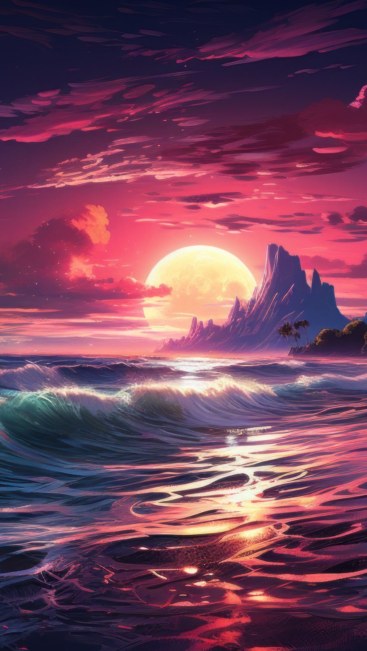 Explore a captivating and futuristic vision of a moonlit neon sea through this AI-generated 4K wallpaper. Perfect for high-resolution displays, it portrays an imaginative and vibrant digital art scene with luminous aesthetics. Simply click the download button to bring this masterpiece to life on your screen as a desktop wallpaper or save it for later in your picture collection.