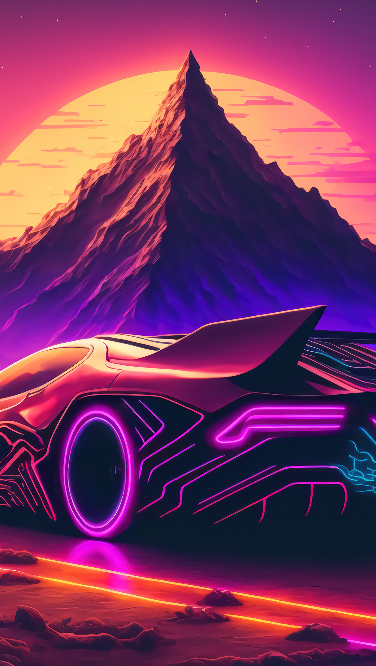 4K digital artwork features a sleek and modern sports car, set against the stunning backdrop of a colorful sunset landscape. Unleash Your Inner Creativity with High-Quality Wallpapers. AI-generated and sourced wallpapers available in High Quality Resolution. Simply click the download button to bring these masterpieces to life on your screen as a desktop wallpaper or save it for later in your picture collection.