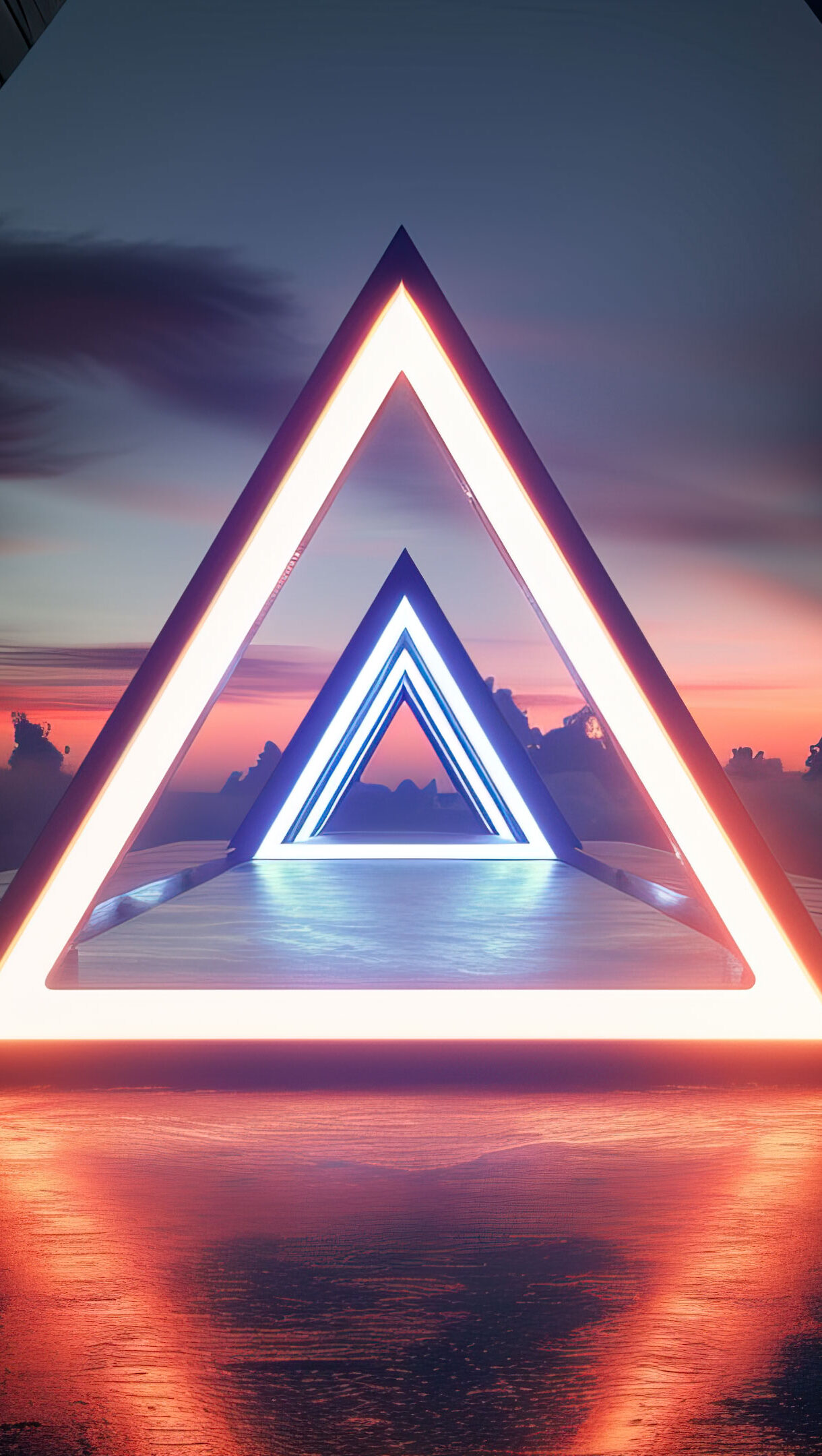 A mesmerizing 4K wallpaper featuring a futuristic AI-generated triangle portal. The geometric design and vibrant colors create a captivating visual effect, transporting you to a sci-fi world. Ideal for desktop or mobile backgrounds, this wallpaper offers a glimpse into a surreal, imaginative realm.