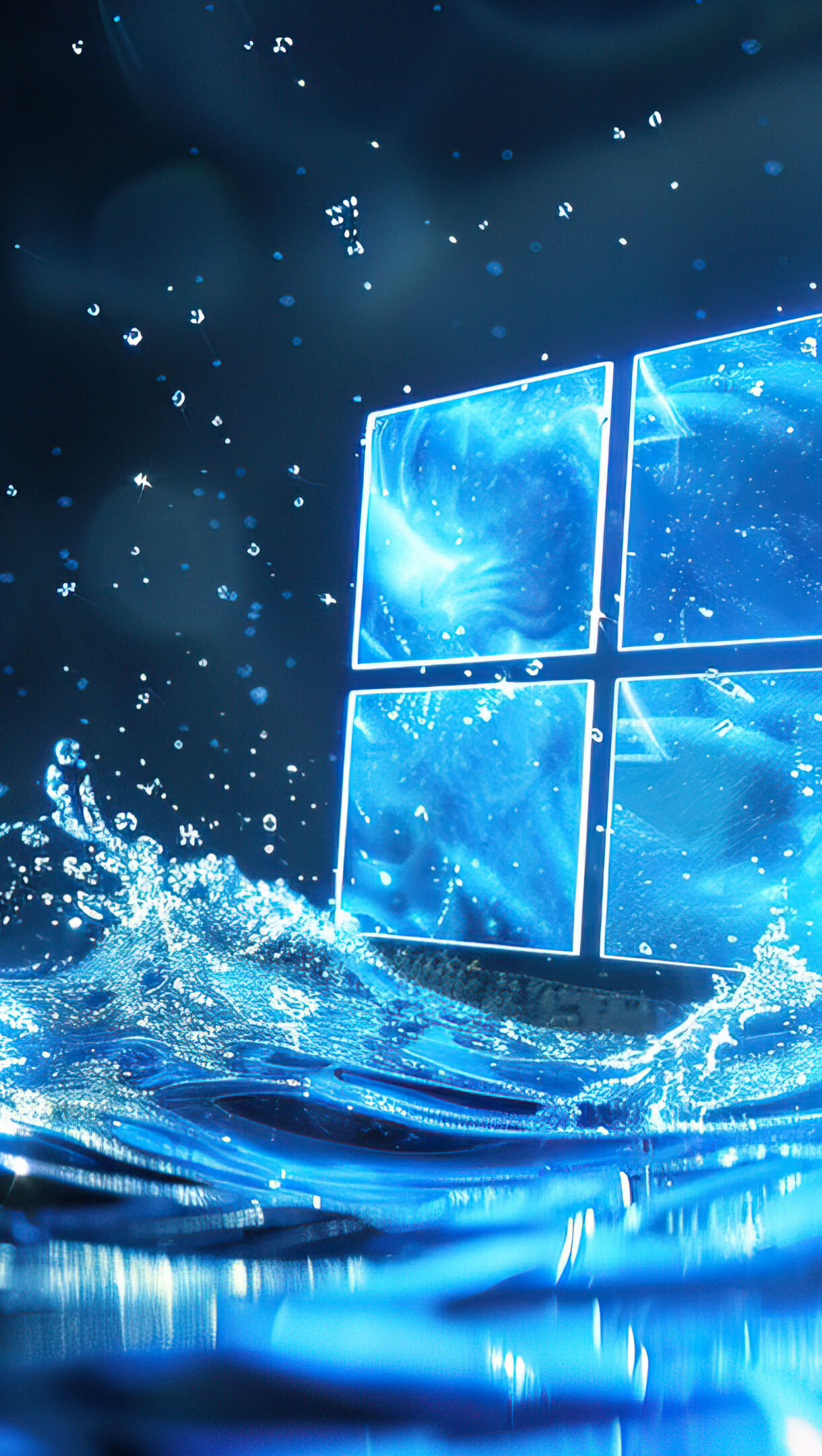 A stunning 4K wallpaper featuring a futuristic Windows logo dynamically emerging from a dramatic water splash. The sleek and vibrant design captures the essence of modern technology and innovation, creating a striking visual perfect for enhancing your desktop or mobile screen.