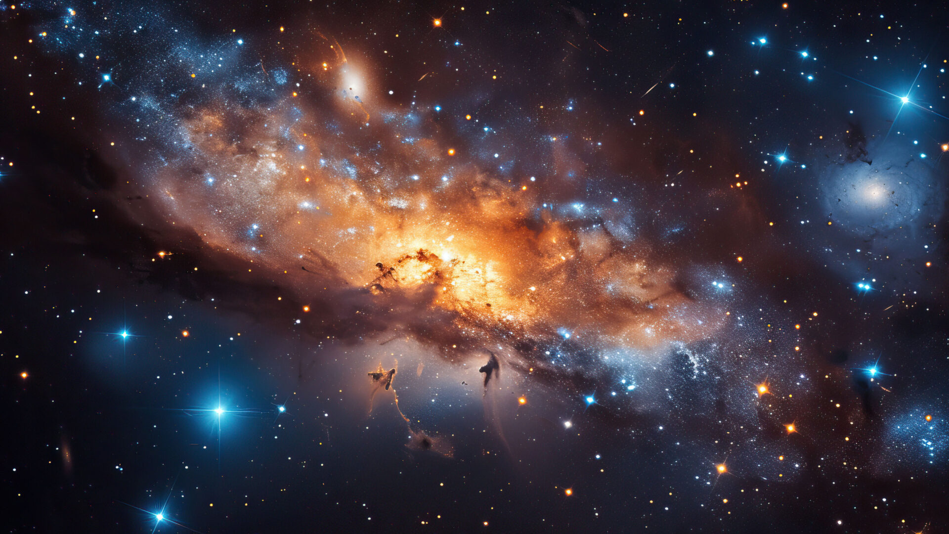 A mesmerizing 4K wallpaper unfolds, revealing the breathtaking beauty of an AI-generated cosmic masterpiece. Vibrant hues dance across the celestial canvas, creating an otherworldly display of stars and abstract patterns. Simply click the download button to bring this masterpiece to life on your screen as a desktop wallpaper or save it for later in your wallpaper collection.