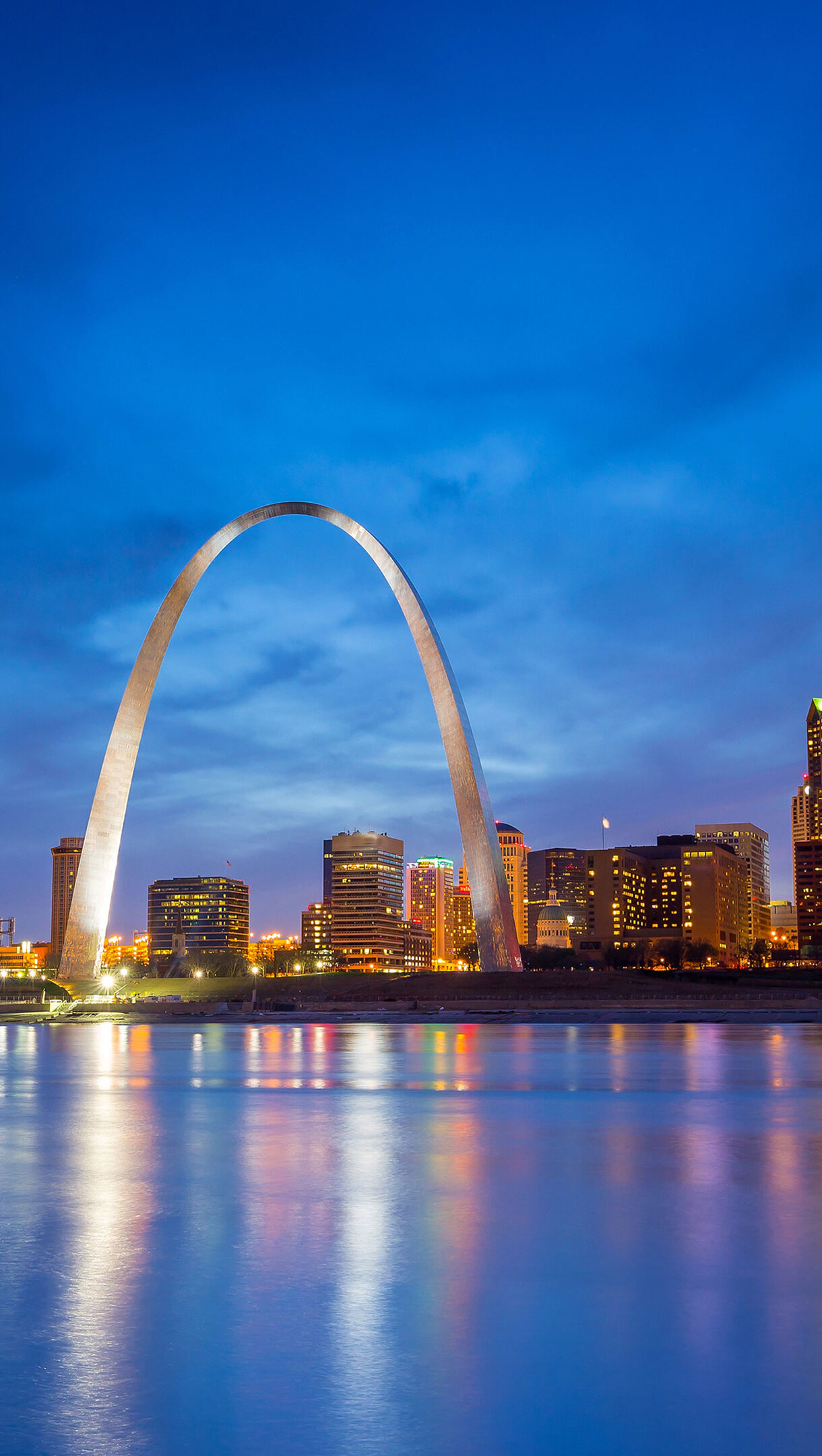 Gateway Arch St. Louis Missouri Skyline Night Reflection Wallpaper
