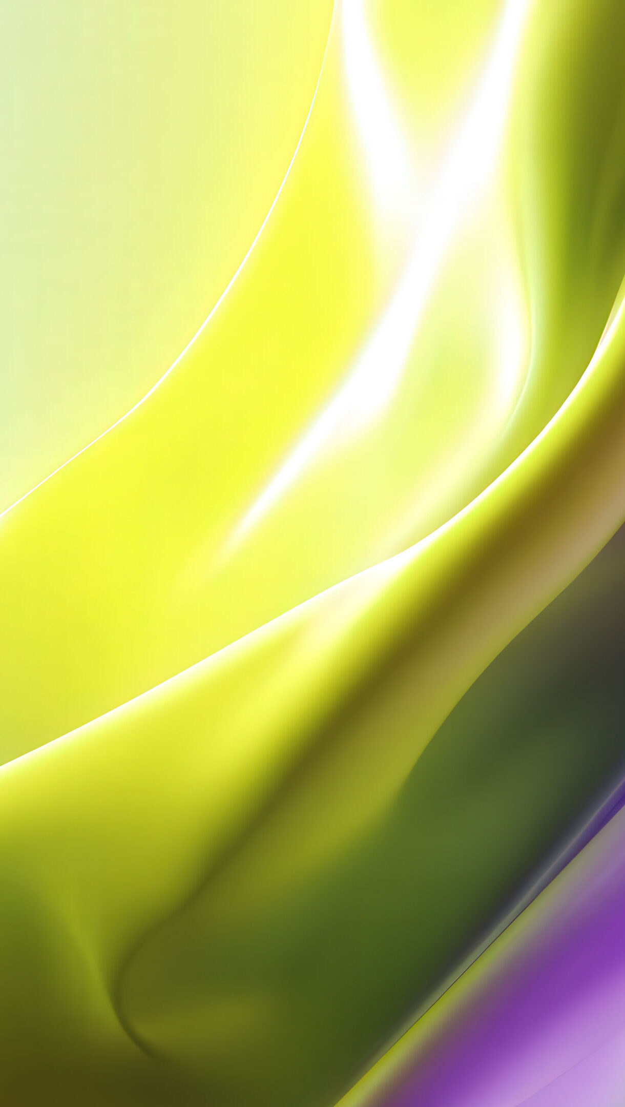 A dynamic and abstract flow of gentle hues, featuring luminous gradients of lime green, soft yellow, and delicate purple, creating a fluid and ethereal visual experience.