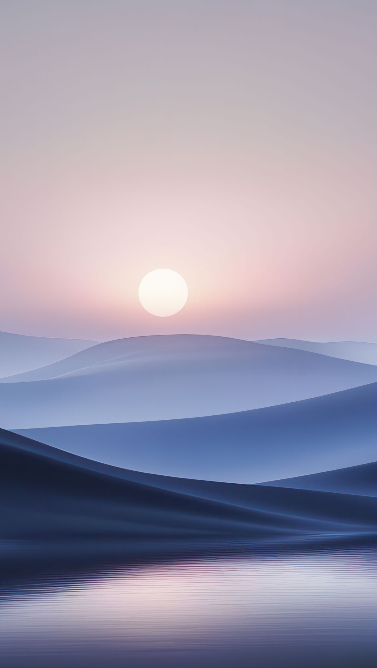 A serene 4K wallpaper depicting a gentle sunrise over tranquil waters, with soft hues of gold and pink illuminating the sky and reflecting on the calm surface, perfect for creating a peaceful and uplifting atmosphere on your screen. Simply click the download button to bring this masterpiece to life on your screen as a desktop wallpaper or save it for later in your picture collection.