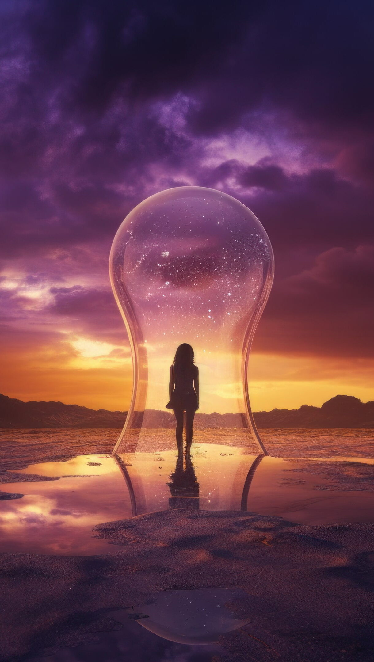 A mesmerizing 4K wallpaper created by AI, featuring a girl inside a bubble, adorned with fantasy art, and a dreamy, futuristic design, making it a captivating addition to your desktop background. Simply click the download button to bring this masterpiece to life on your screen as a desktop wallpaper or save it for later in your picture collection.