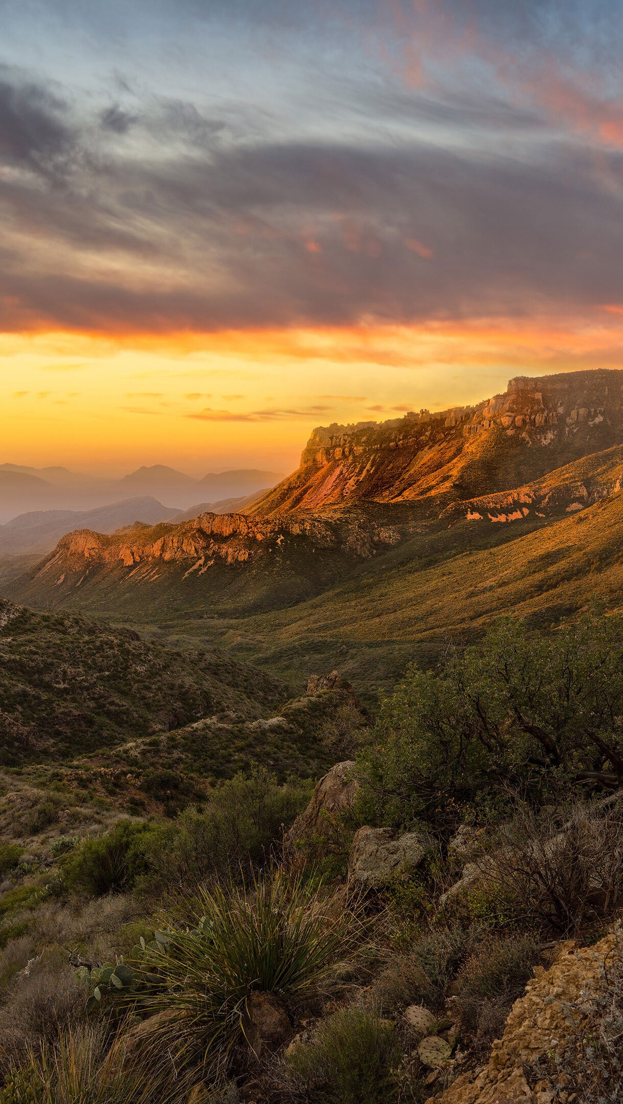 Golden Sunset Illuminates Chisos Mountains, Big Bend National Park Wallpaper