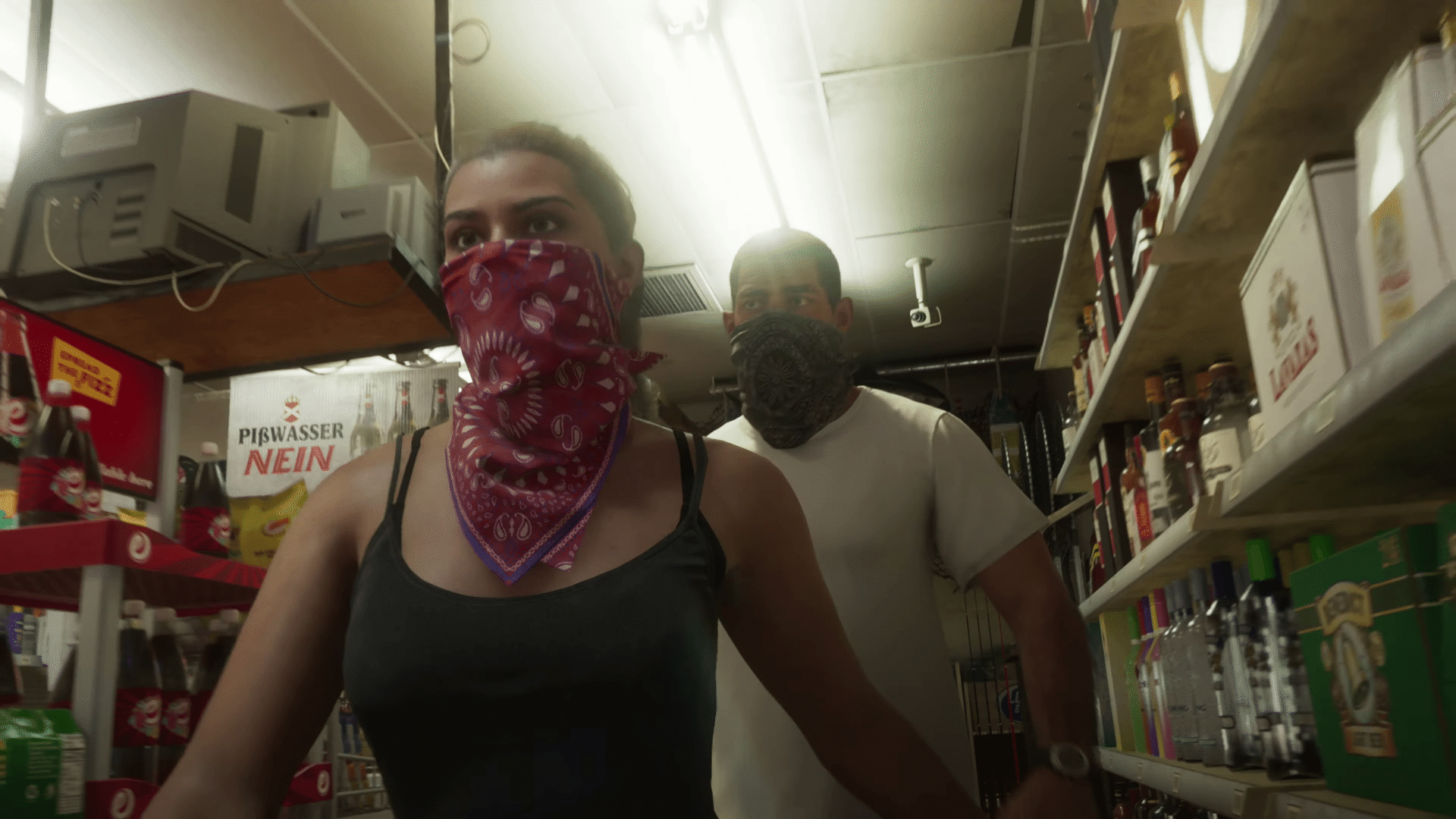 Dive into the dynamic world of Grand Theft Auto 6 with this visually striking 4K wallpaper featuring Jason and Lucia. The electrifying scene captures the essence of the highly anticipated game, showcasing the intensity and intrigue of Rockstar Games' next installment in the GTA series. Simply click the download button to bring this masterpiece to life on your screen as a desktop wallpaper or save it for later in your picture collection.