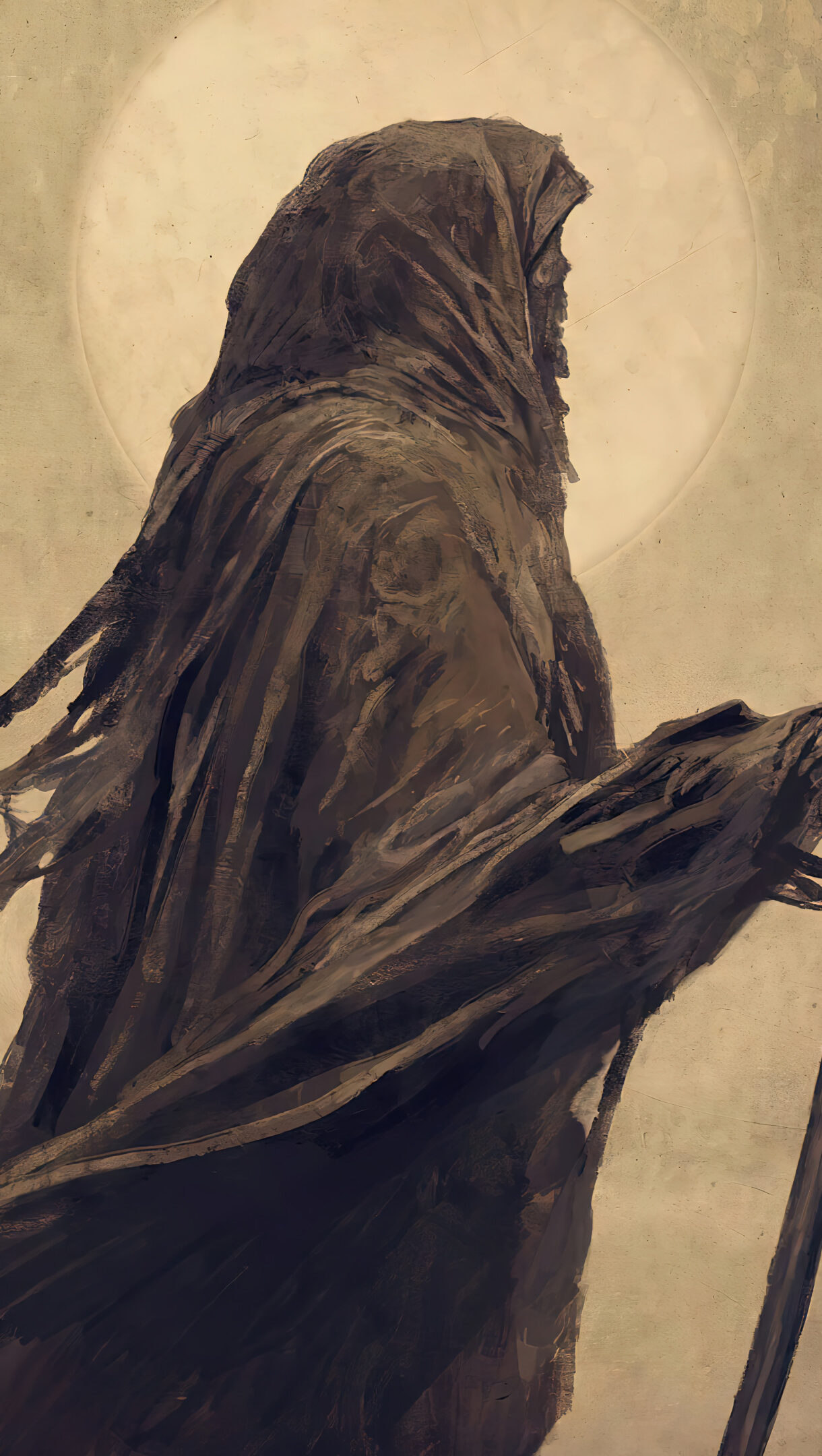 An eerie digital art wallpaper featuring the Grim Reaper holding a scythe, rendered in stunning 4K resolution. This dark and haunting wallpaper is perfect for fans of fantasy, horror, and the supernatural. Unleash Your Inner Creativity with High-Quality Wallpapers. AI-generated and sourced wallpapers available in High Quality Resolution. Simply click the download button to bring these masterpieces to life on your screen as a desktop wallpaper or save it for later in your picture collection.