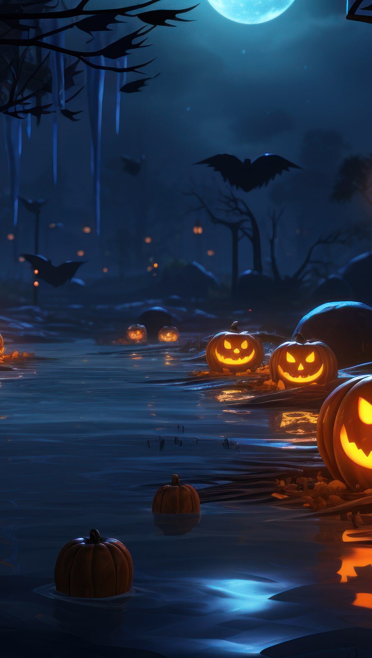 Halloween Spooky Pumpkin Forest 4K Wallpaper