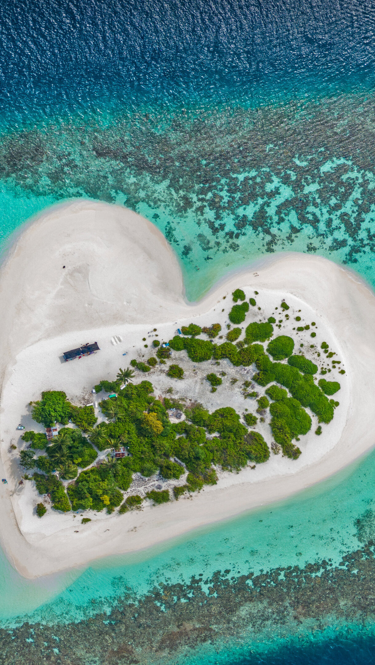 Heart-shaped Island Maldives, Sandy Beach, Coral Reef, Indian Ocean