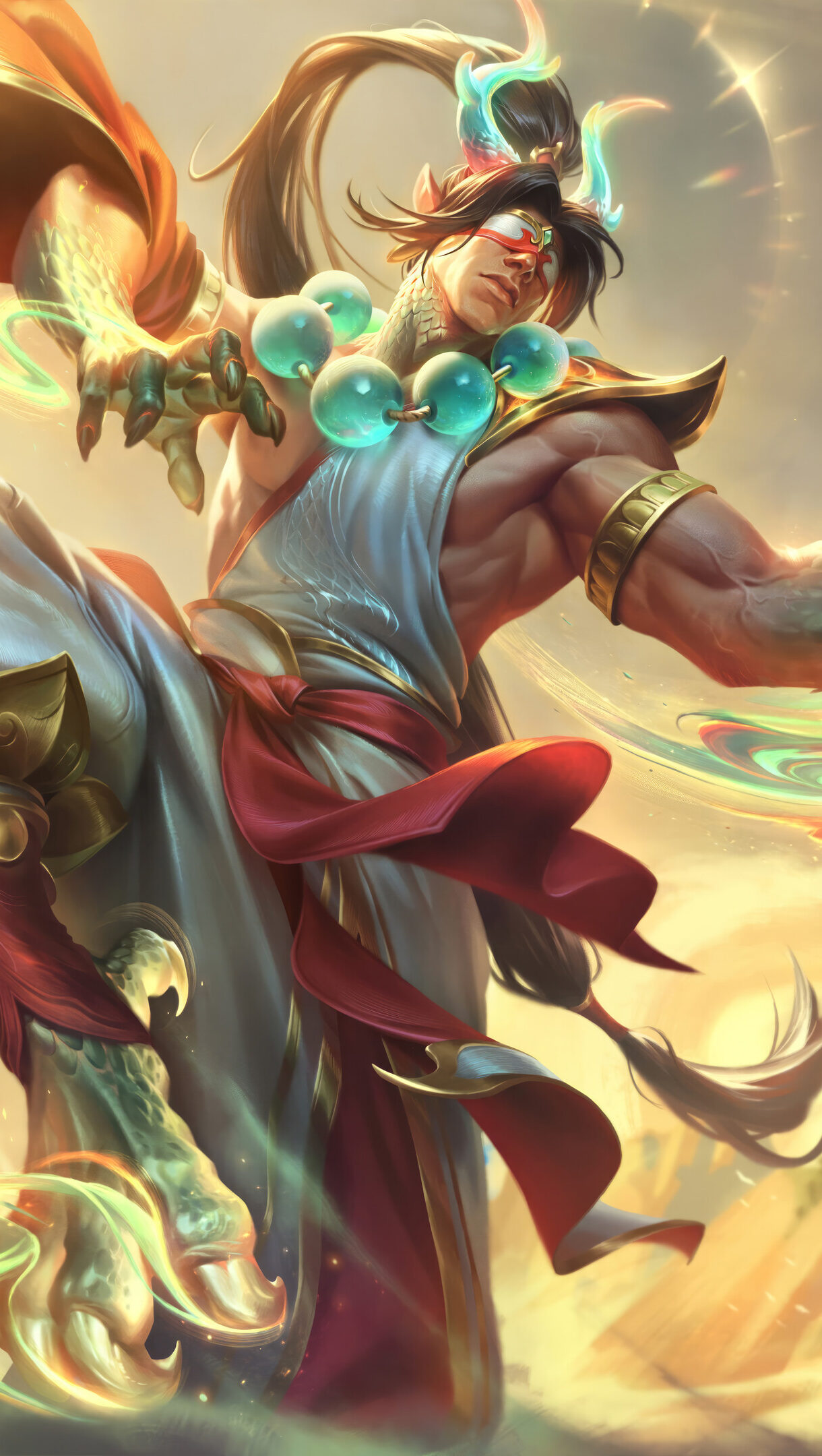 A mesmerizing 4K wallpaper featuring the celestial Heavenscale Lee Sin skin in League of Legends. Lee Sin, the Blind Monk, radiates divine energy as he showcases his mastery of martial arts in an ethereal and heavenly setting, embodying the grace and power of the Heavenscale skin. Simply click the download button to bring this masterpiece to life on your screen as a desktop wallpaper or save it for later in your wallpaper collection.