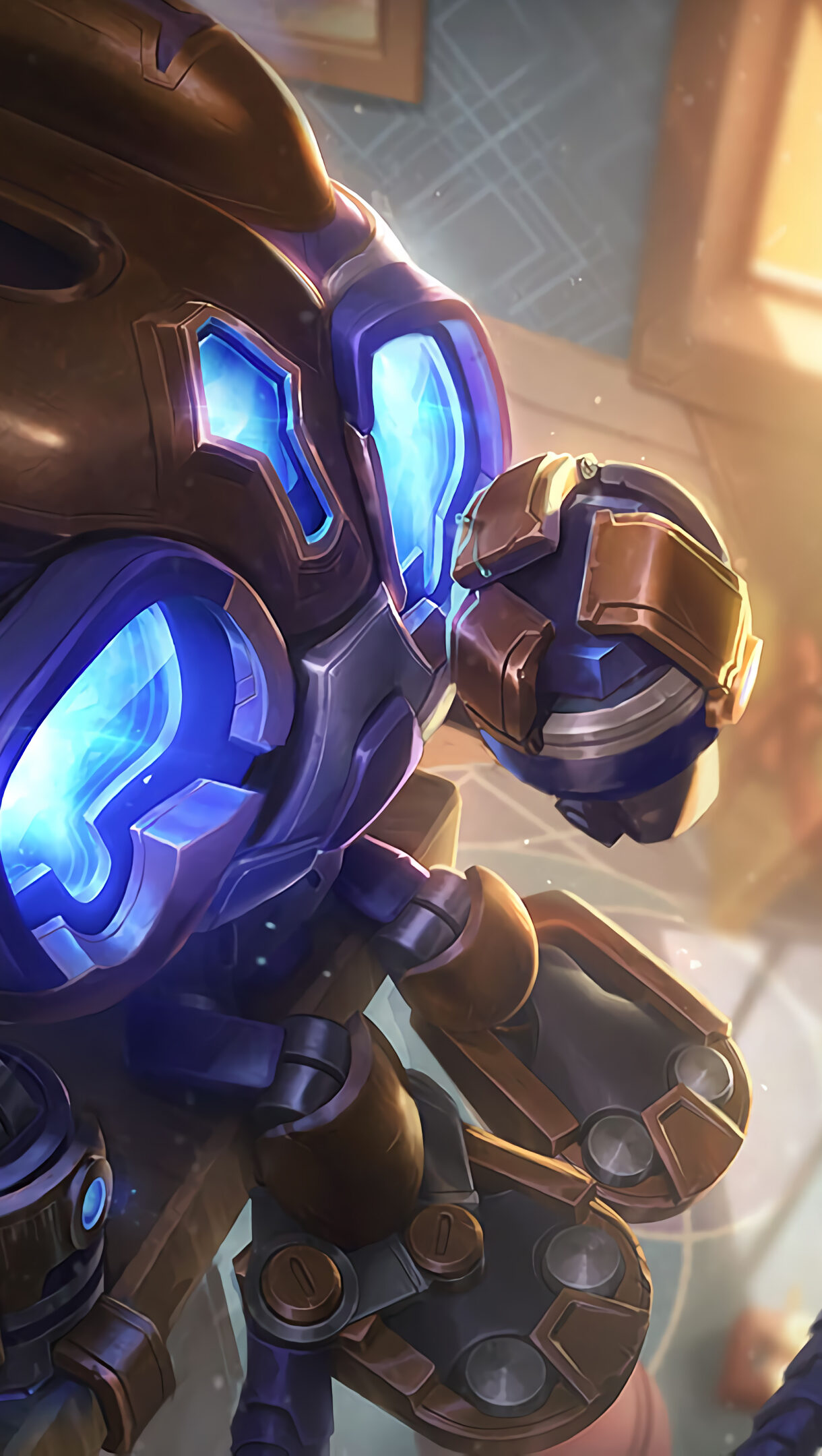 A captivating 4K wallpaper featuring the Hextech Amumu skin from League of Legends. Amumu, the Sad Mummy, is showcased with his exclusive Hextech skin, adorned with intricate mechanical details and a touch of magic. Simply click the download button to bring this masterpiece to life on your screen as a desktop wallpaper or save it for later in your picture collection.