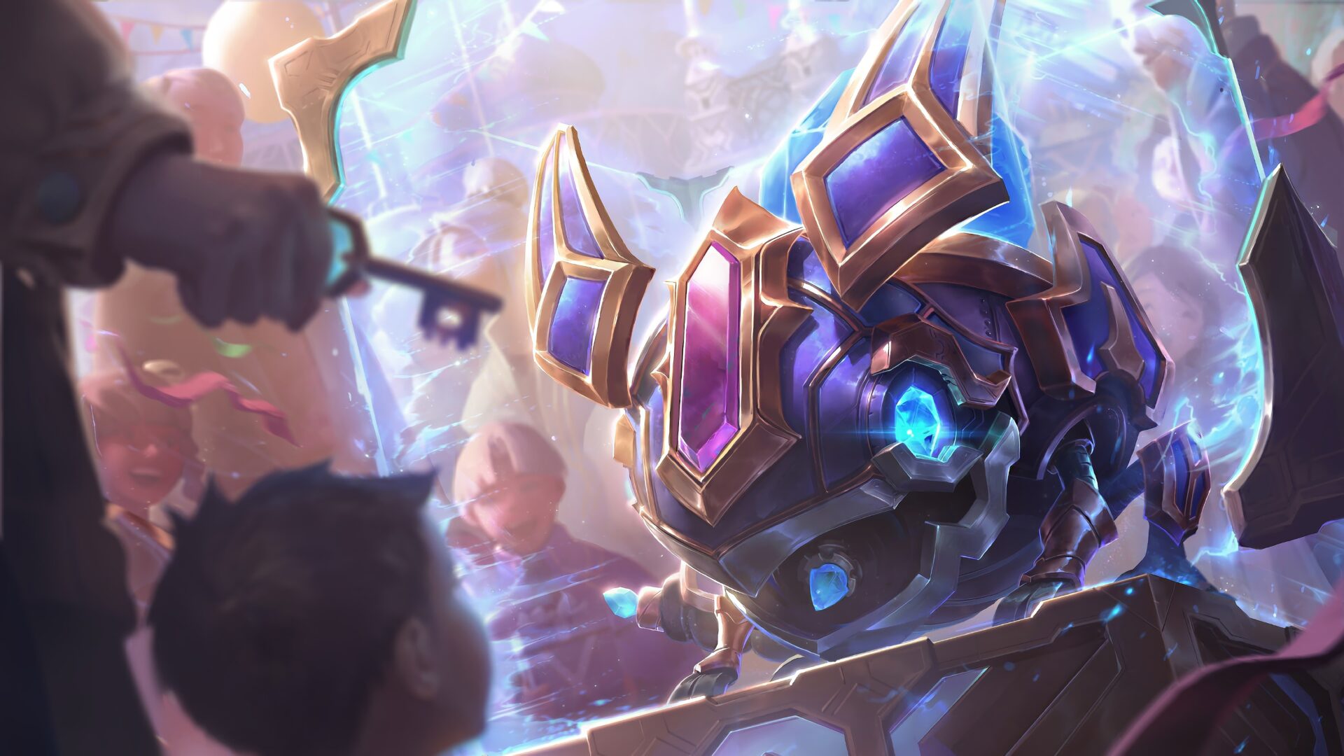 A high-resolution 4K wallpaper featuring the Hextech Kog'Maw skin from League of Legends. Kog'Maw, the Voidborn champion, is depicted in his vibrant and mechanical Hextech form, ready to unleash chaos and destruction. Simply click the download button to bring this masterpiece to life on your screen as a desktop wallpaper or save it for later in your picture collection.