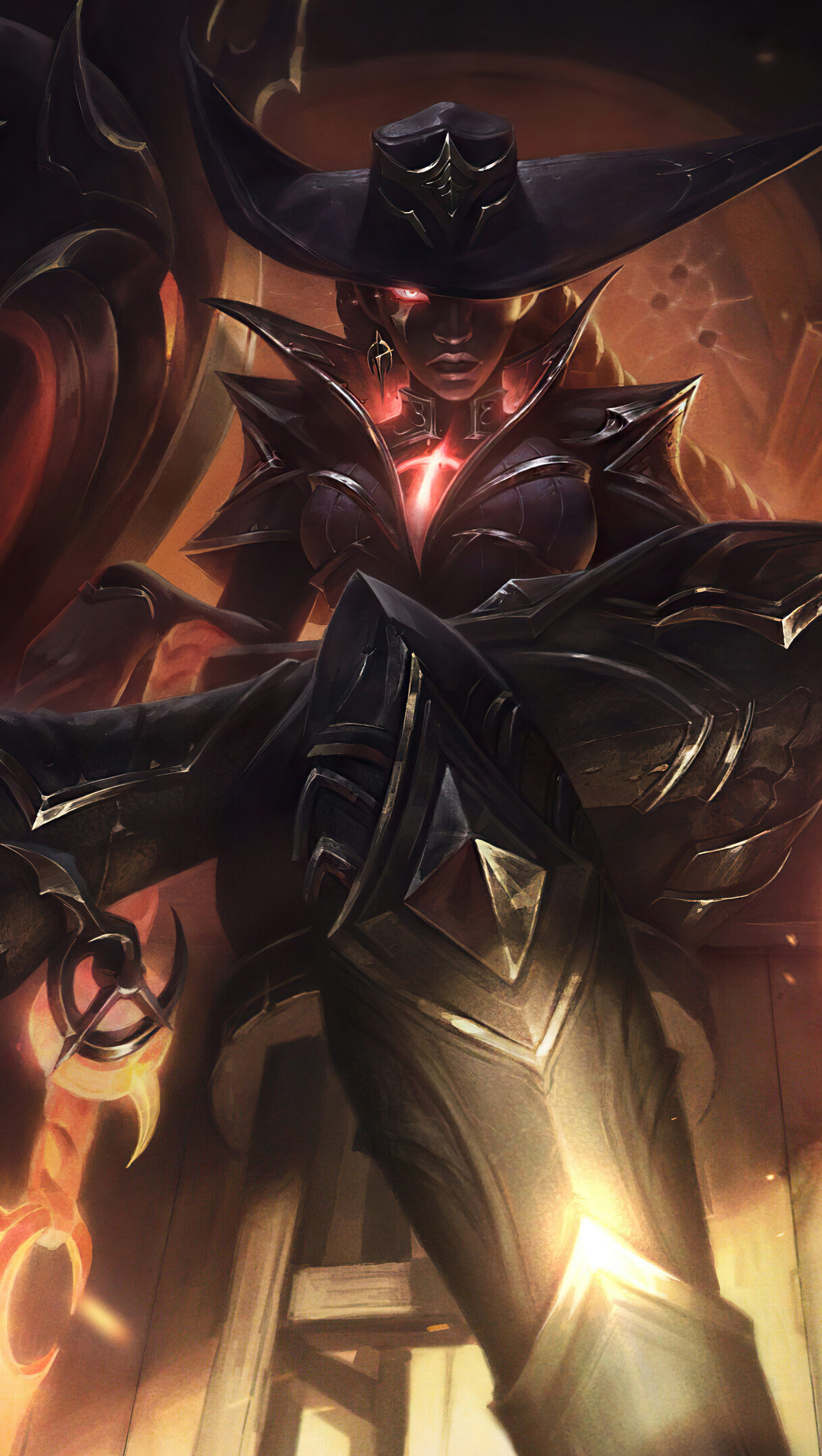 A captivating 4K wallpaper featuring the High Noon Senna skin from League of Legends. Senna, the sentinel of light, is depicted in her High Noon attire, wielding her powerful relic cannon against the backdrop of a western-inspired landscape. Simply click the download button to bring this masterpiece to life on your screen as a desktop wallpaper or save it for later in your picture collection.