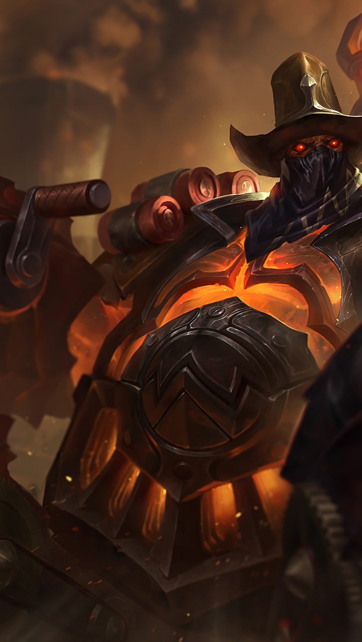 A captivating 4K wallpaper showcasing the High Noon Urgot skin from League of Legends. Urgot, the dreadnought of Noxus, is portrayed in his High Noon attire, emanating a menacing presence against a backdrop of the Wild West. Simply click the download button to bring this masterpiece to life on your screen as a desktop wallpaper or save it for later in your picture collection.