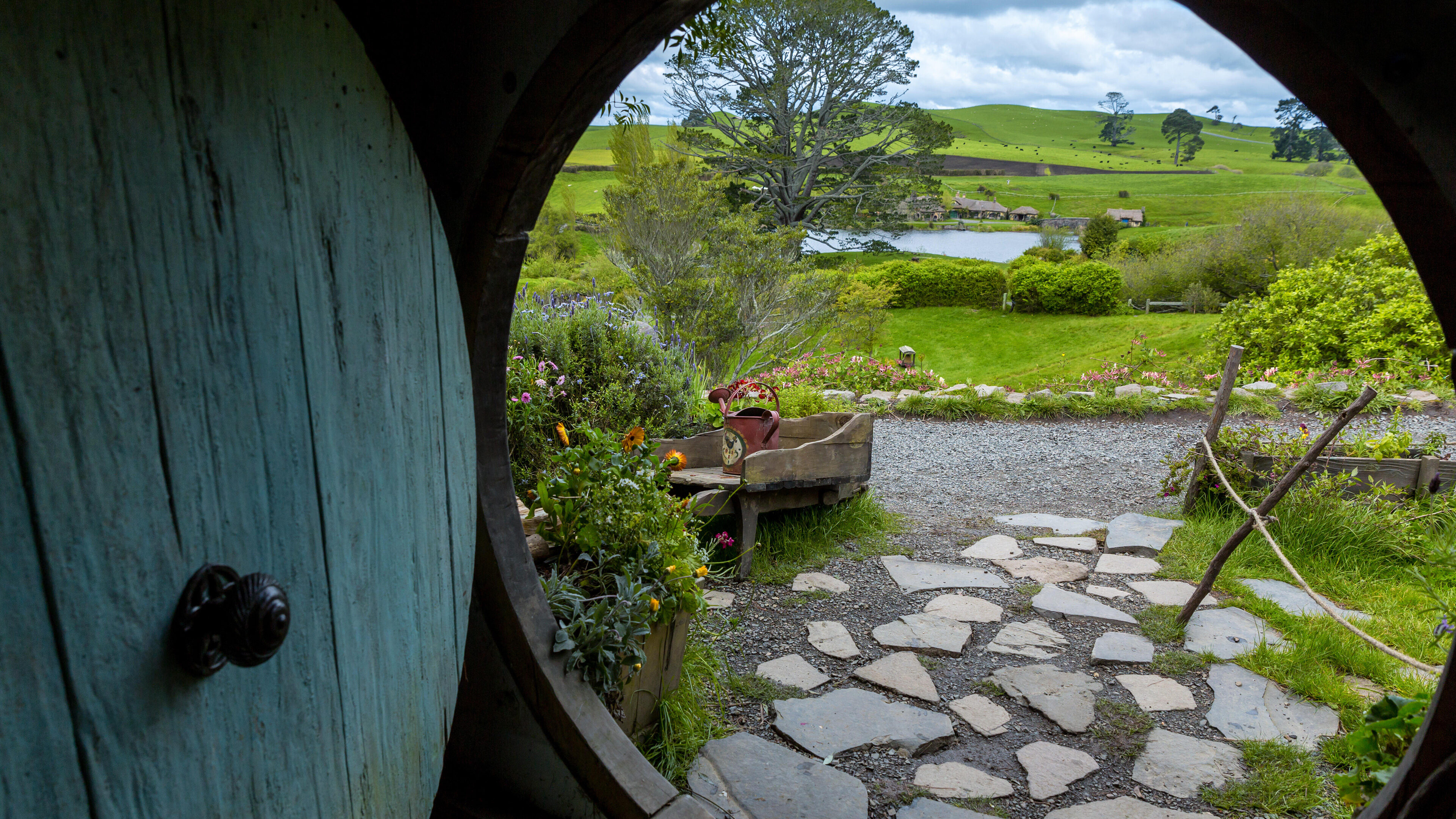 Hobbiton Movie Set Landscape View From Hobbit-hole Door Wallpaper