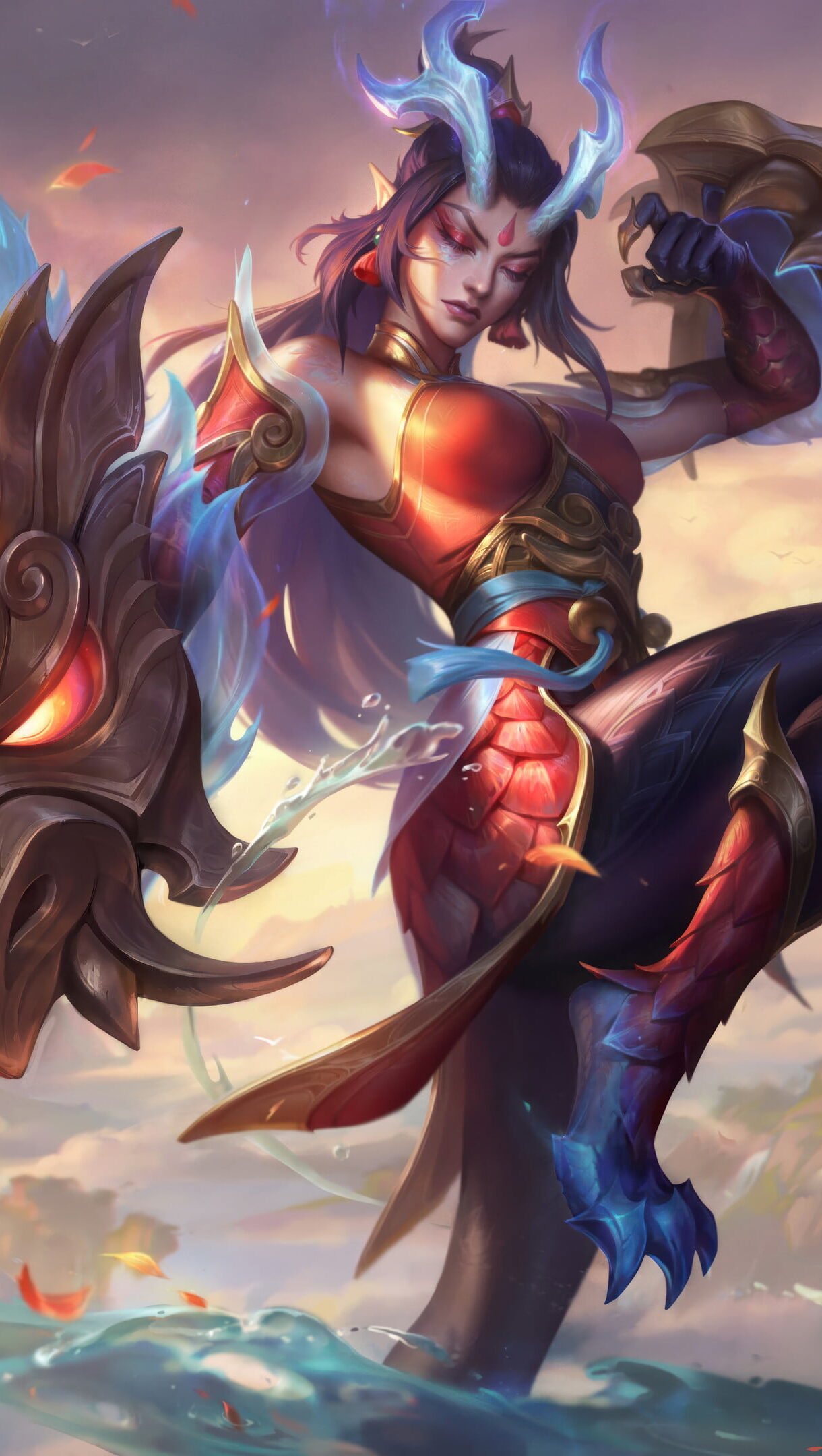 A mesmerizing 4K wallpaper showcasing the Immortal Journey Shyvana skin from League of Legends. Shyvana, the half-dragon champion, is depicted in all her glory with celestial wings and fiery aura, ready for battle. Simply click the download button to bring this masterpiece to life on your screen as a desktop wallpaper or save it for later in your picture collection.