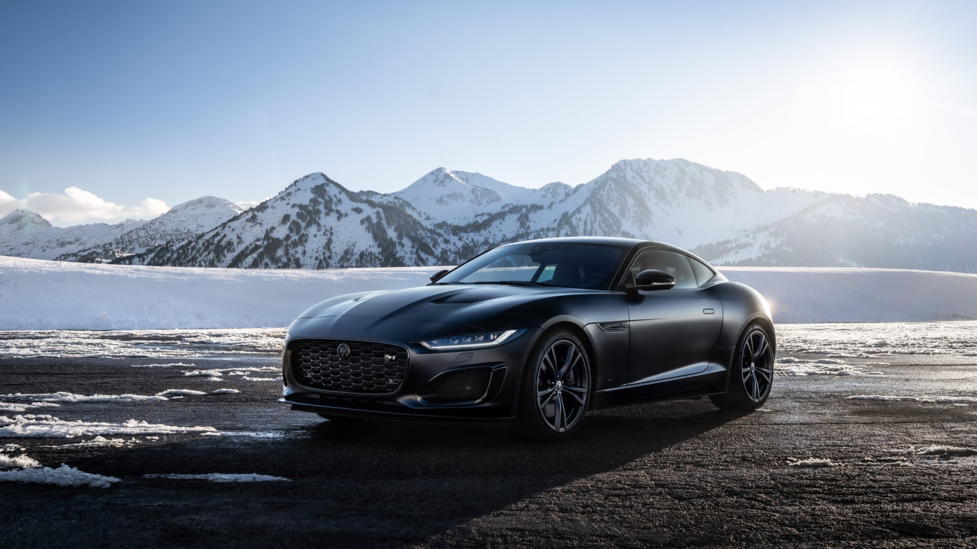 A striking 4K wallpaper featuring the Jaguar F-Type R 75 Coupé, a luxurious and high-performance sports car known for its elegant design and powerful capabilities. Simply click the download button to bring this masterpiece to life on your screen as a desktop wallpaper or save it for later in your picture collection.