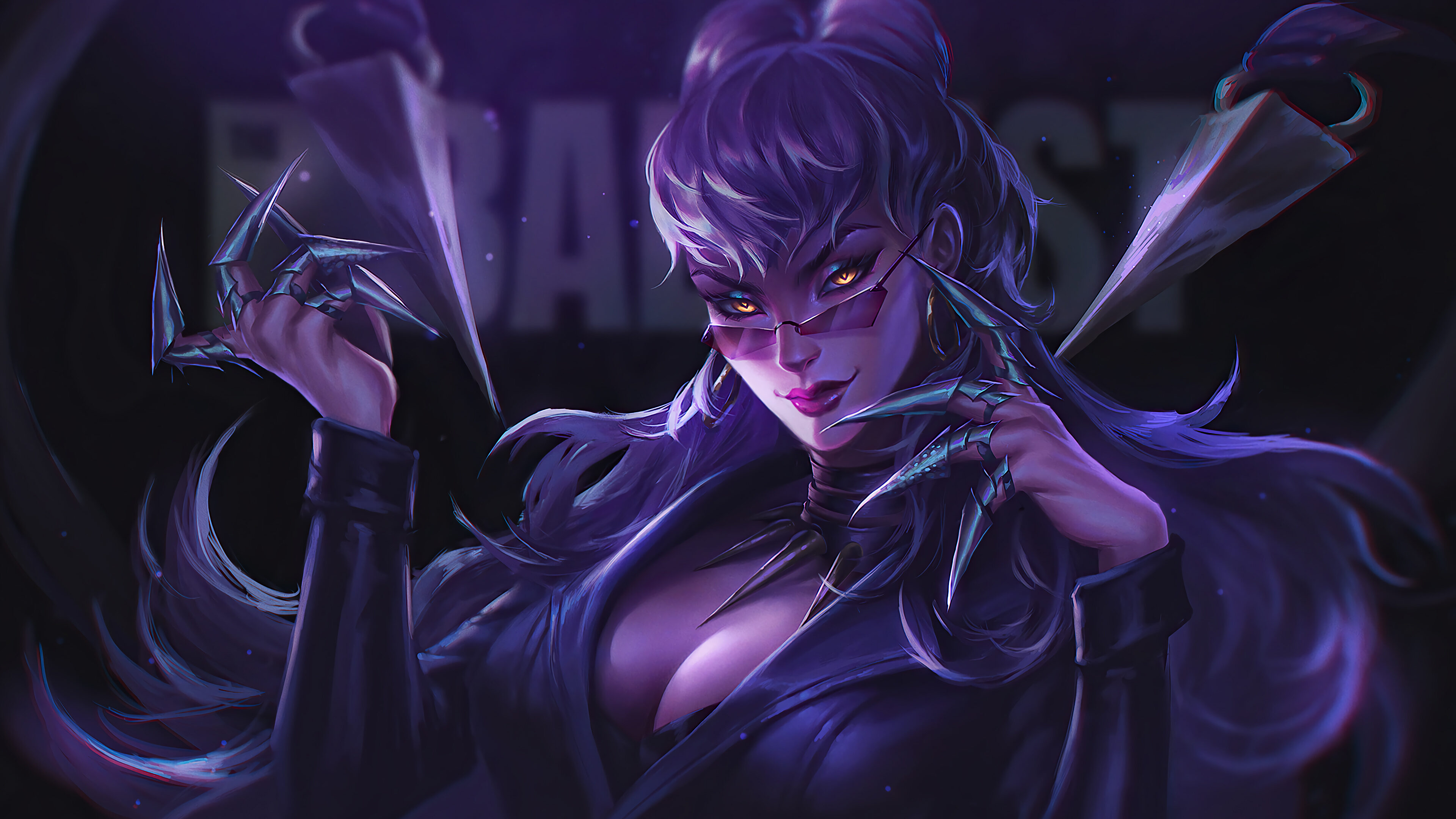 A mesmerizing 4K wallpaper featuring the K/DA Evelynn The Baddest skin from League of Legends. Evelynn, the seductive assassin in her stunning K/DA outfit. Experience the excitement and thrill of League Of Legends on your screen. Simply click the download button to bring this masterpiece to life on your screen as a desktop wallpaper or save it for later in your picture collection.