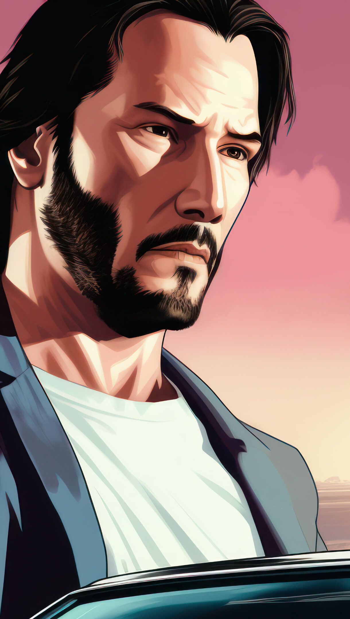 Lose yourself in the world of Grand Theft Auto with this stunning 4K wallpaper featuring Keanu Reeves as a character. This AI-generated wallpaper captures the essence of the popular video game franchise, and is perfect for gamers and fans alike. Unleash Your Inner Creativity with High-Quality Wallpapers. AI-generated and sourced wallpapers available in High Quality Resolution. Simply click the download button to bring these masterpieces to life on your screen as a desktop wallpaper or save it for later in your picture collection.