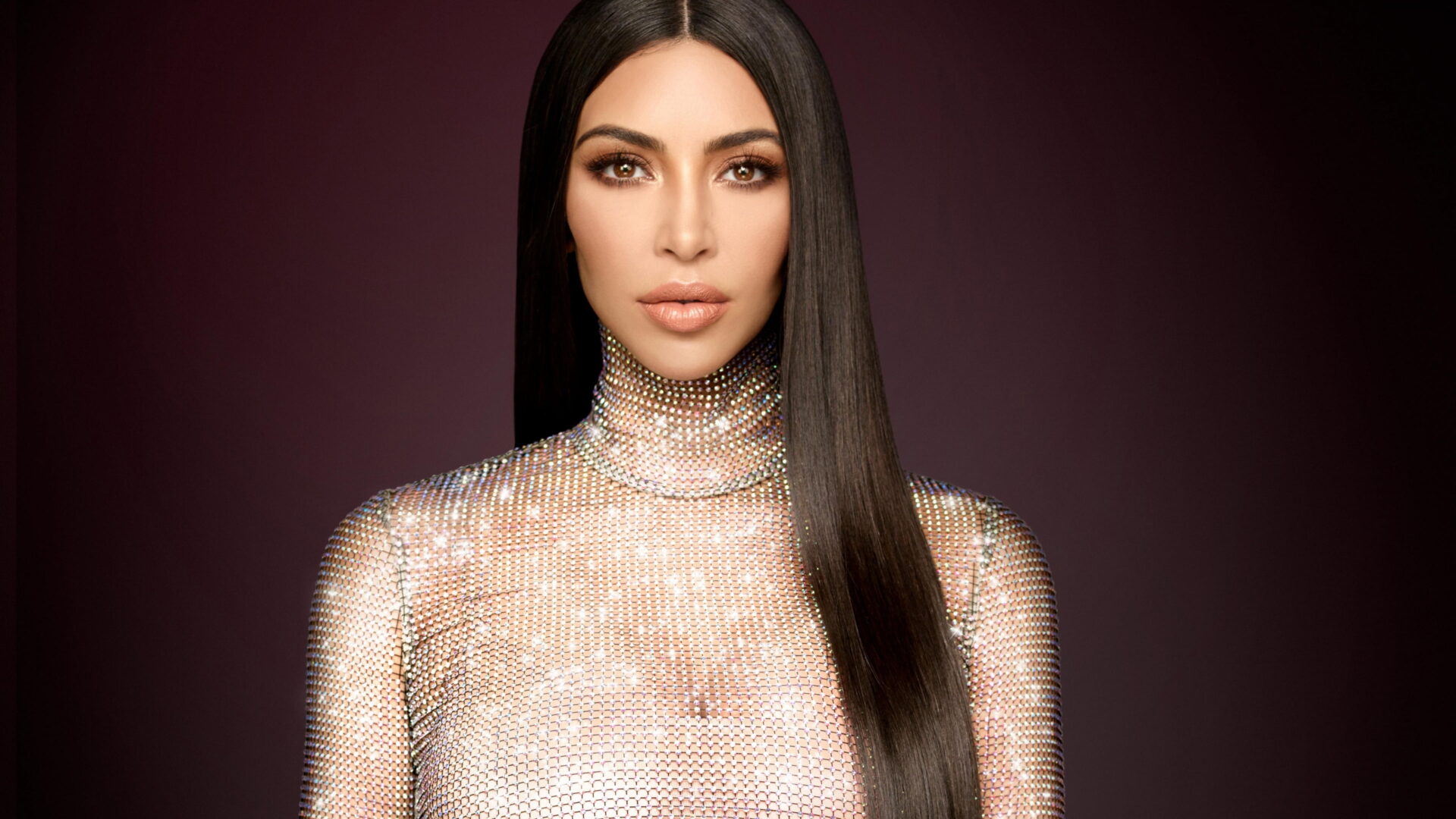 A glamorous 4K wallpaper featuring Kim Kardashian, a renowned celebrity known for her influence in fashion and entertainment, perfect for fans and admirers of her style and achievements.