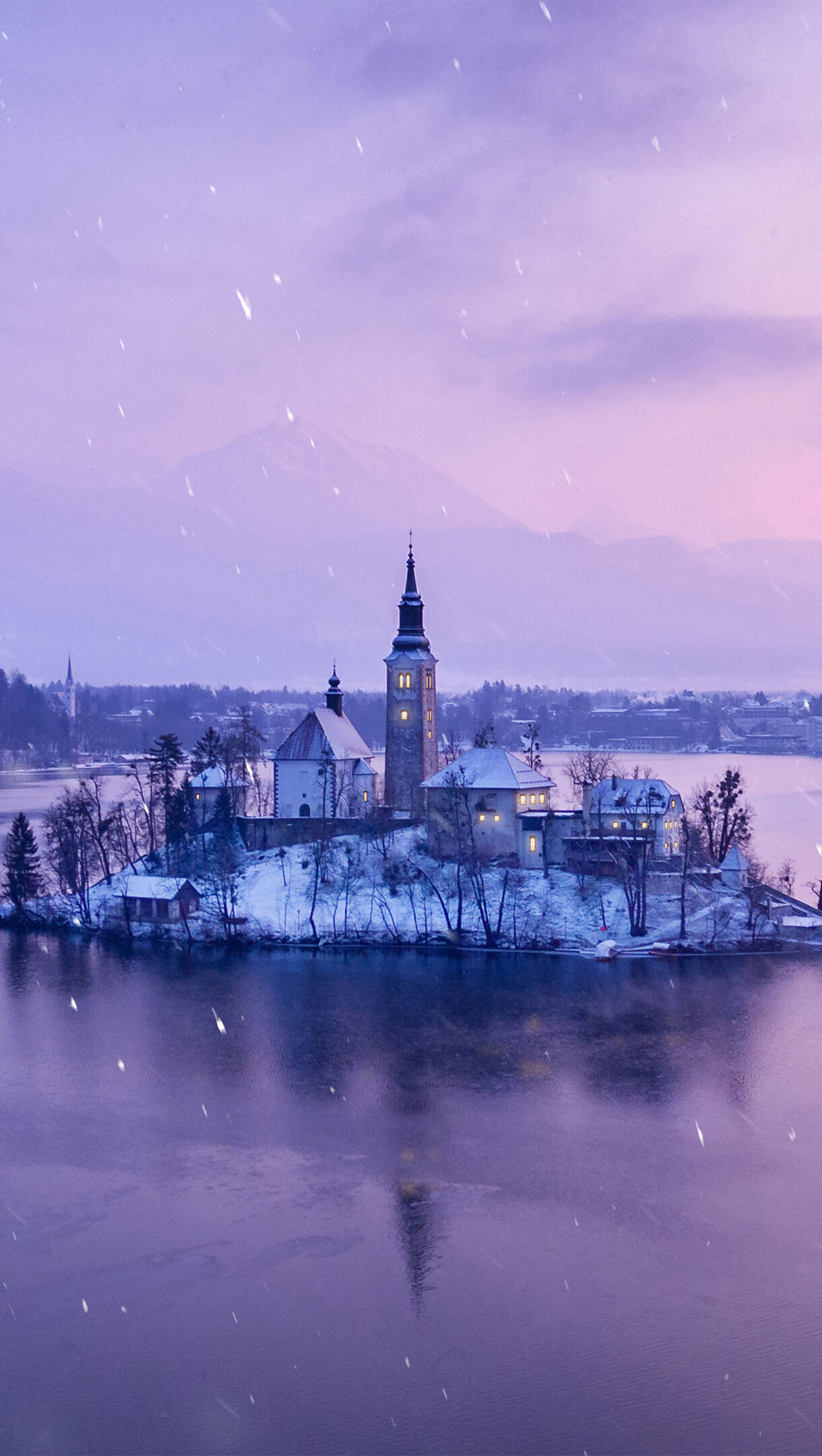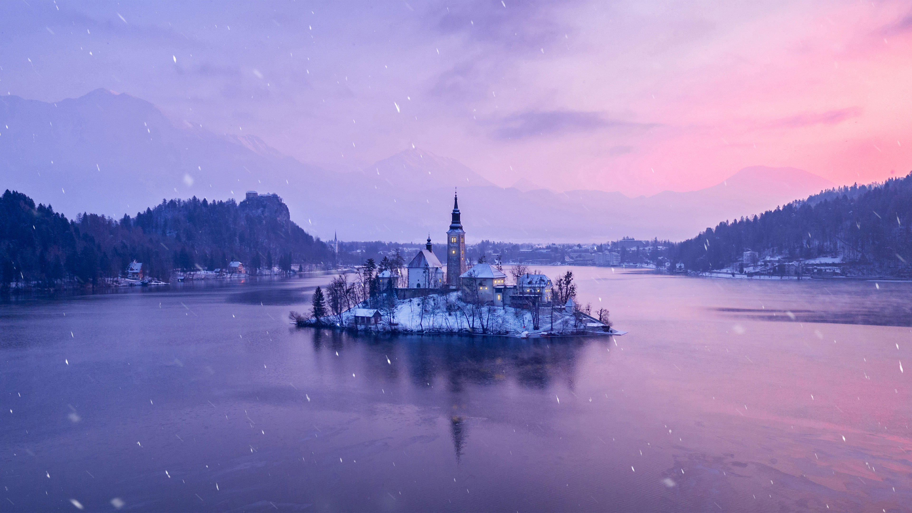 Lake Bled Slovenia Winter Sunset Island Church Wallpaper