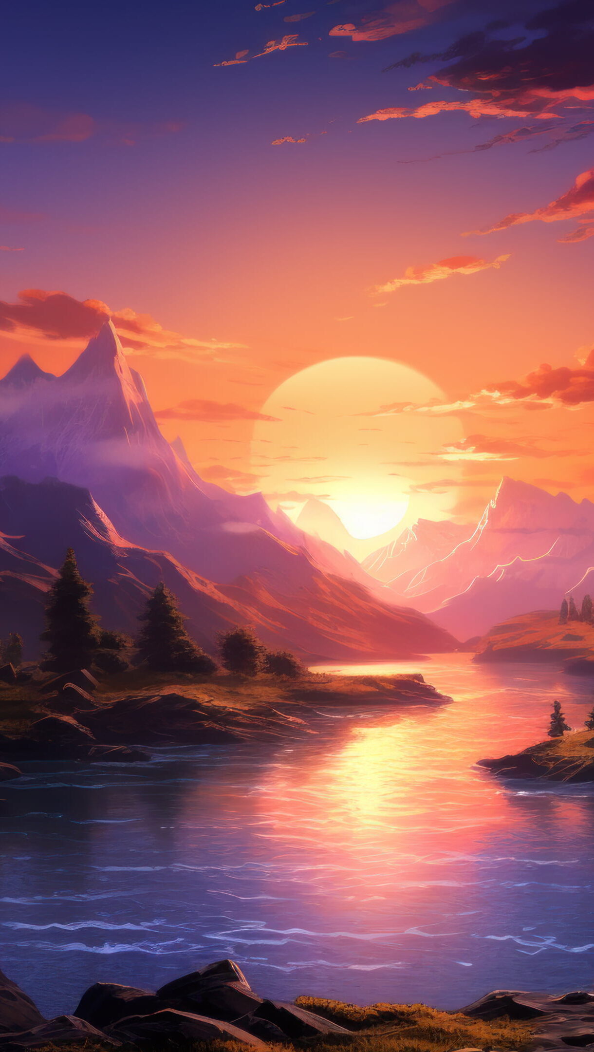 Immerse yourself in the serene beauty of a 4K AI generated sunset wallpaper where the tranquil evening sky meets the majestic mountains, creating a breathtaking scene. Ideal for those who appreciate the calming and scenic view of nature as a desktop background. Simply click the download button to bring this masterpiece to life on your screen as a desktop wallpaper or save it for later in your picture collection.