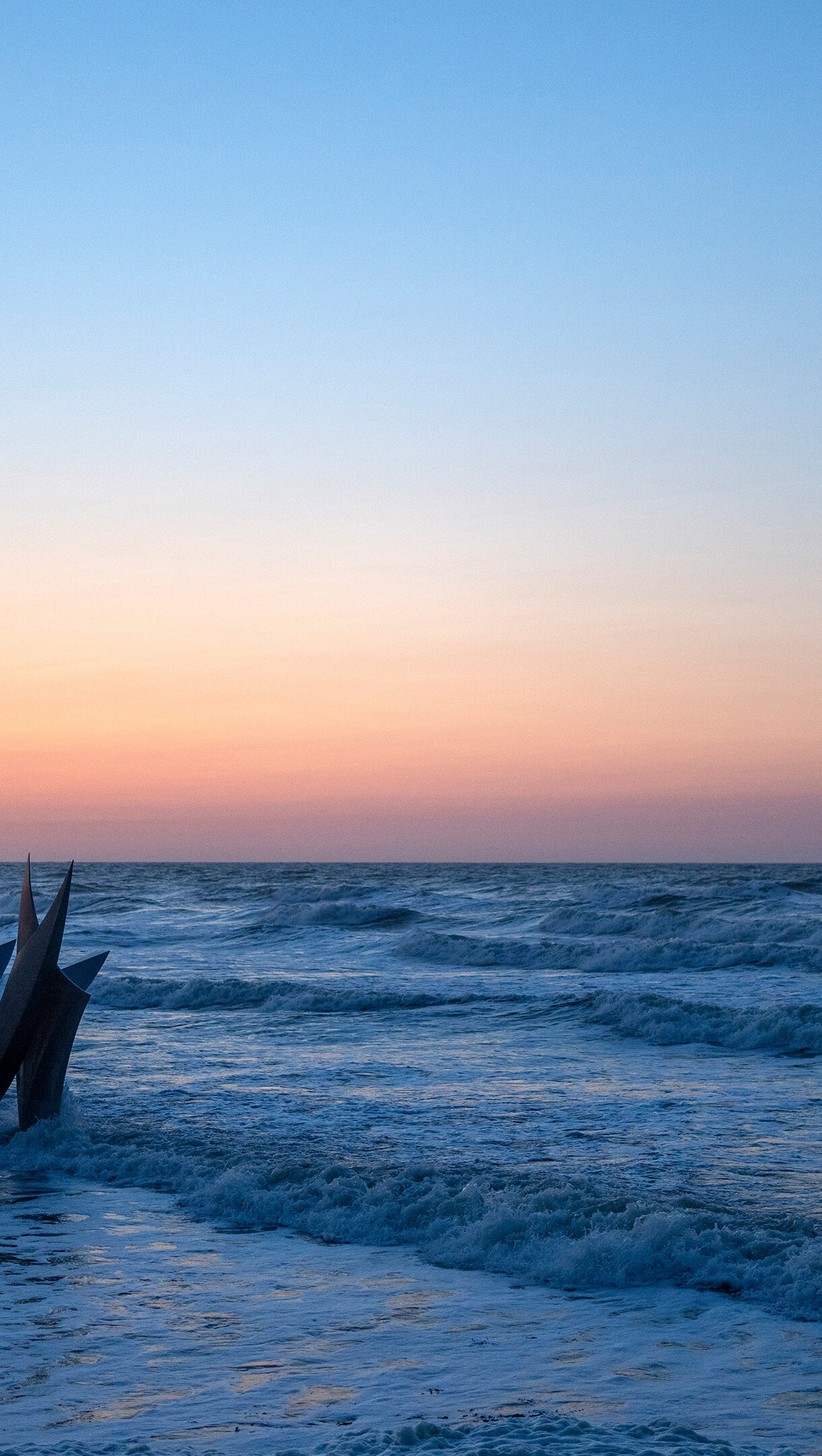 Les Braves Monument Omaha Beach Sunset Waves Wallpaper