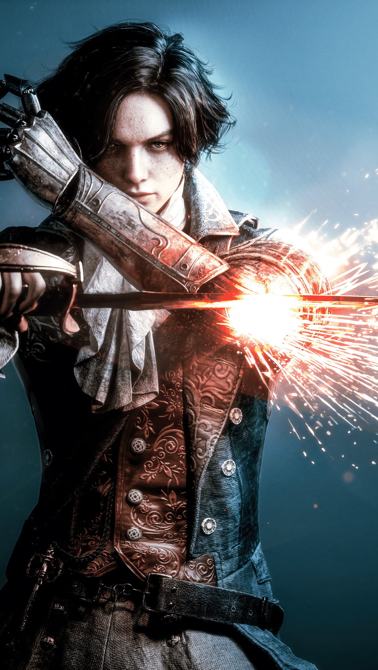 A captivating 4K wallpaper featuring the Lies of P Pinocchio video game. Explore the intricate digital art of this dark and mysterious gaming world, with a high-resolution wallpaper that brings its characters and atmosphere to life. Perfect for your desktop or device background. Simply click the download button to bring this masterpiece to life on your screen as a desktop wallpaper or save it for later in your picture collection.