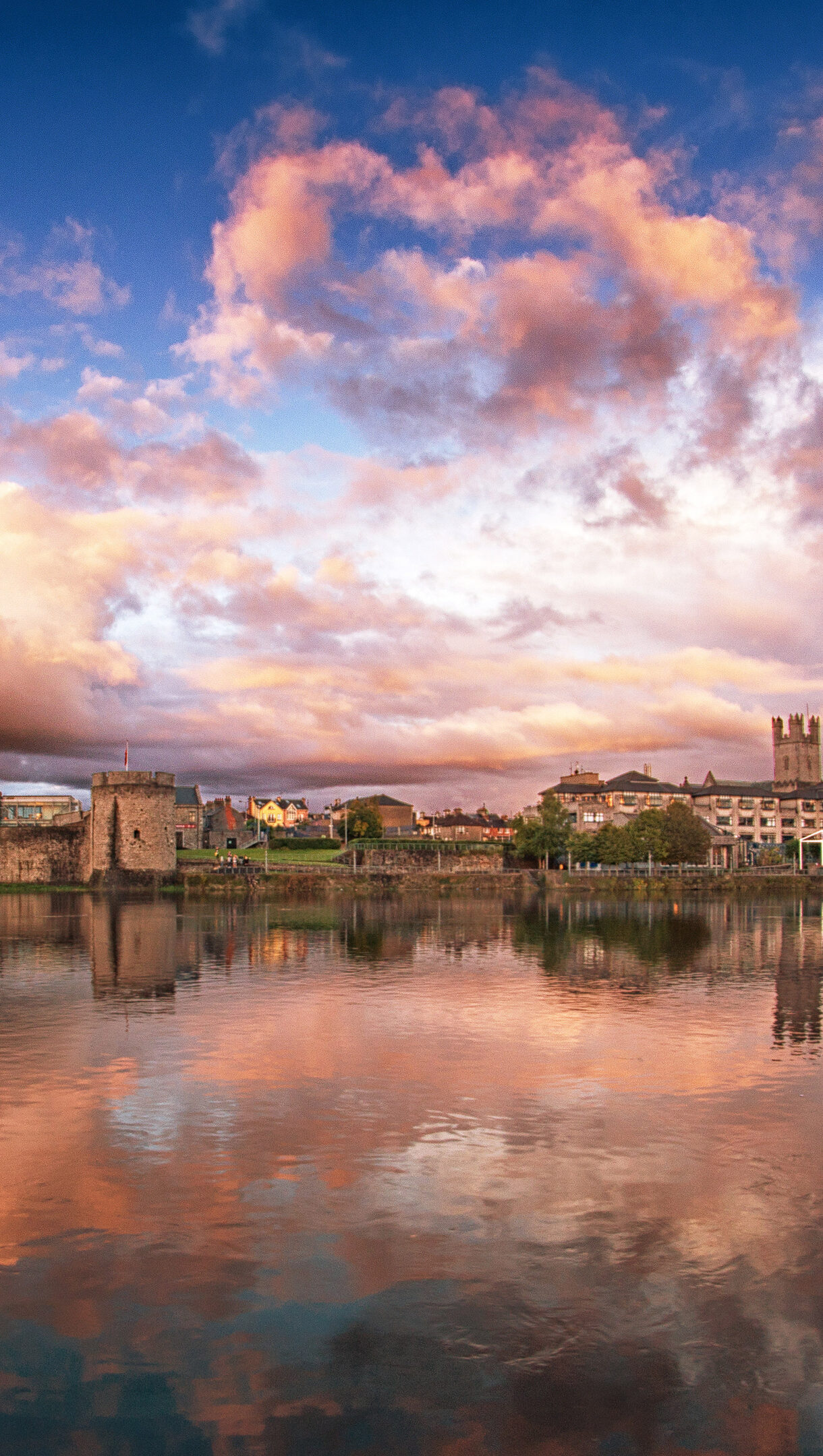 Limerick Ireland River Shannon Cityscape Sunset Reflection Wallpaper