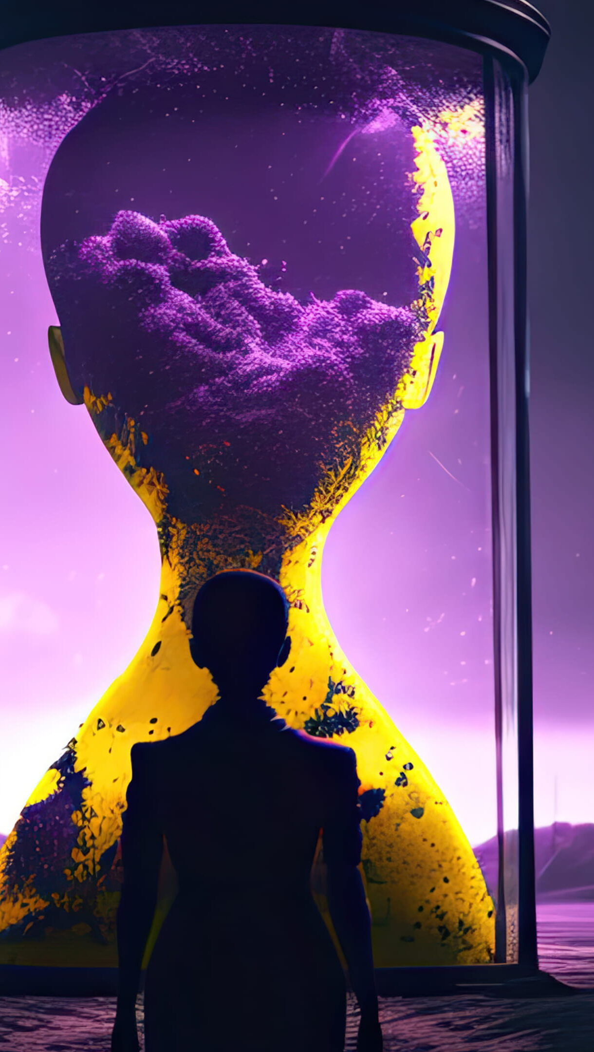 A scenic wallpaper featuring a lonely woman looking at herself in the hourglass. Unleash Your Inner Creativity with High-Quality Wallpapers. AI-generated and sourced wallpapers available in High Quality Resolution. Simply click the download button to bring these masterpieces to life on your screen as a desktop wallpaper or save it for later in your picture collection.