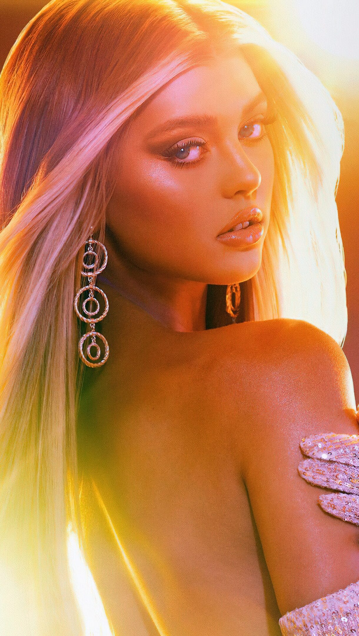 A stunning 4K wallpaper featuring a portrait of Loren Gray, capturing her striking beauty and fashionable style in vivid detail. The high-resolution image is perfect for setting as a desktop or mobile background, showcasing Loren Gray's elegant and poised look.