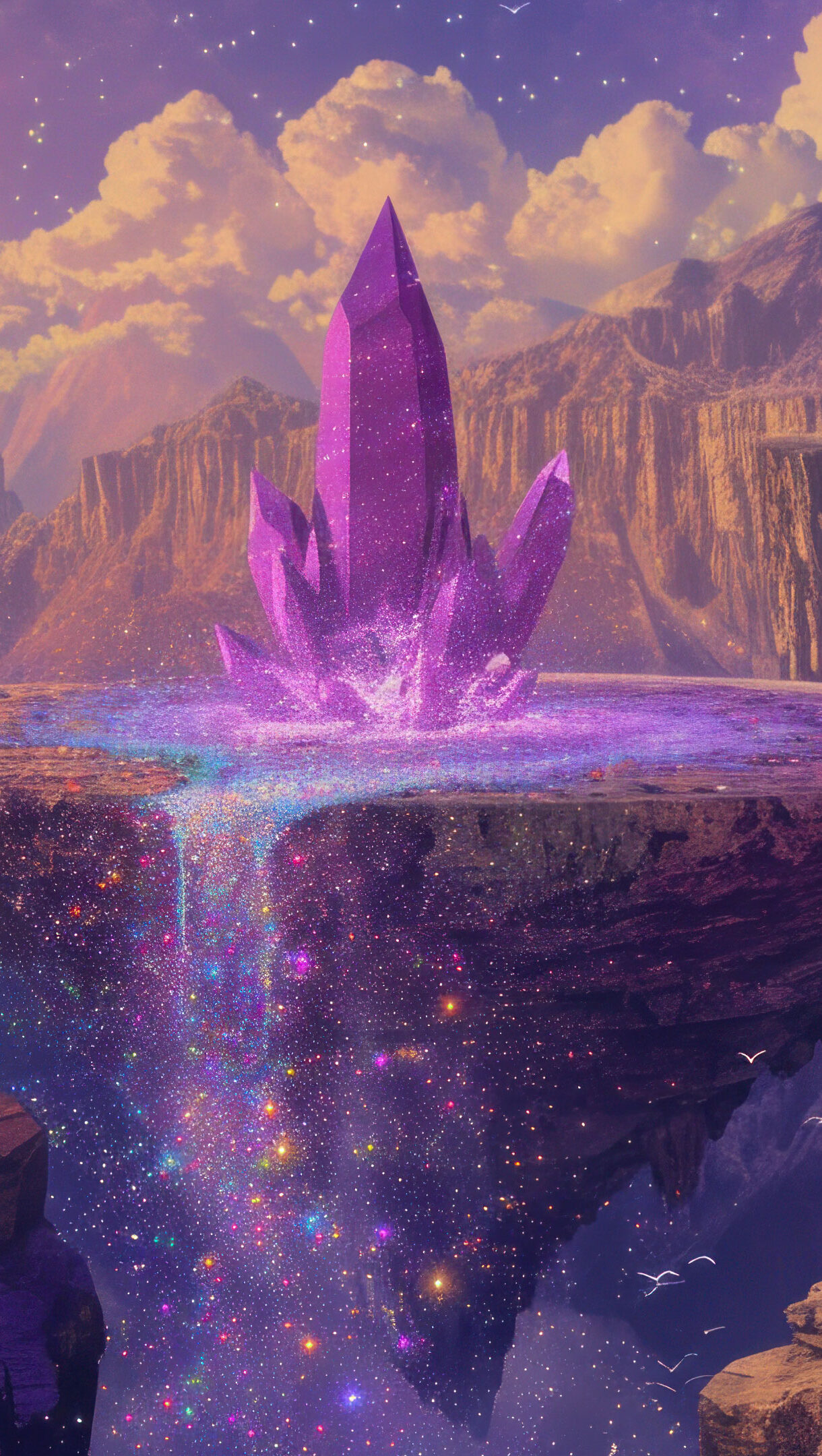 Elevate your screen with the enchantment of this AI-generated 4K wallpaper, showcasing a magical levitating purple rock. Perfect for high-resolution displays, the digital art composition adds a touch of mystique, creating a visually captivating and otherworldly experience for your device. Simply click the download button to bring this masterpiece to life on your screen as a desktop wallpaper or save it for later in your wallpaper collection.