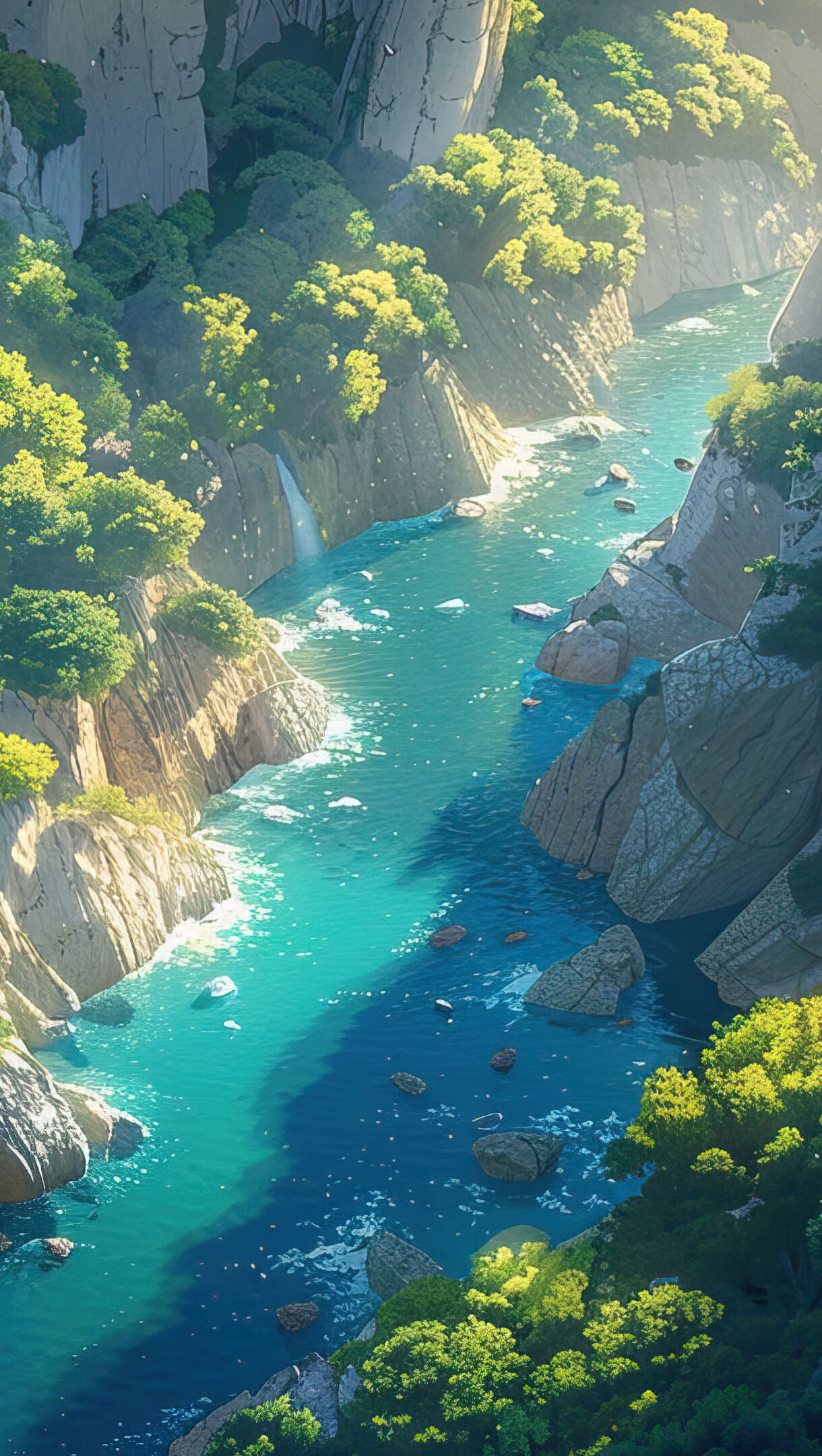 A stunning 4K wallpaper featuring a majestic canyon river landscape. The image captures the serene flow of the river winding through towering canyon walls, with vibrant colors and intricate details that highlight the natural beauty of the scene. Perfect for use as a desktop or mobile background.
