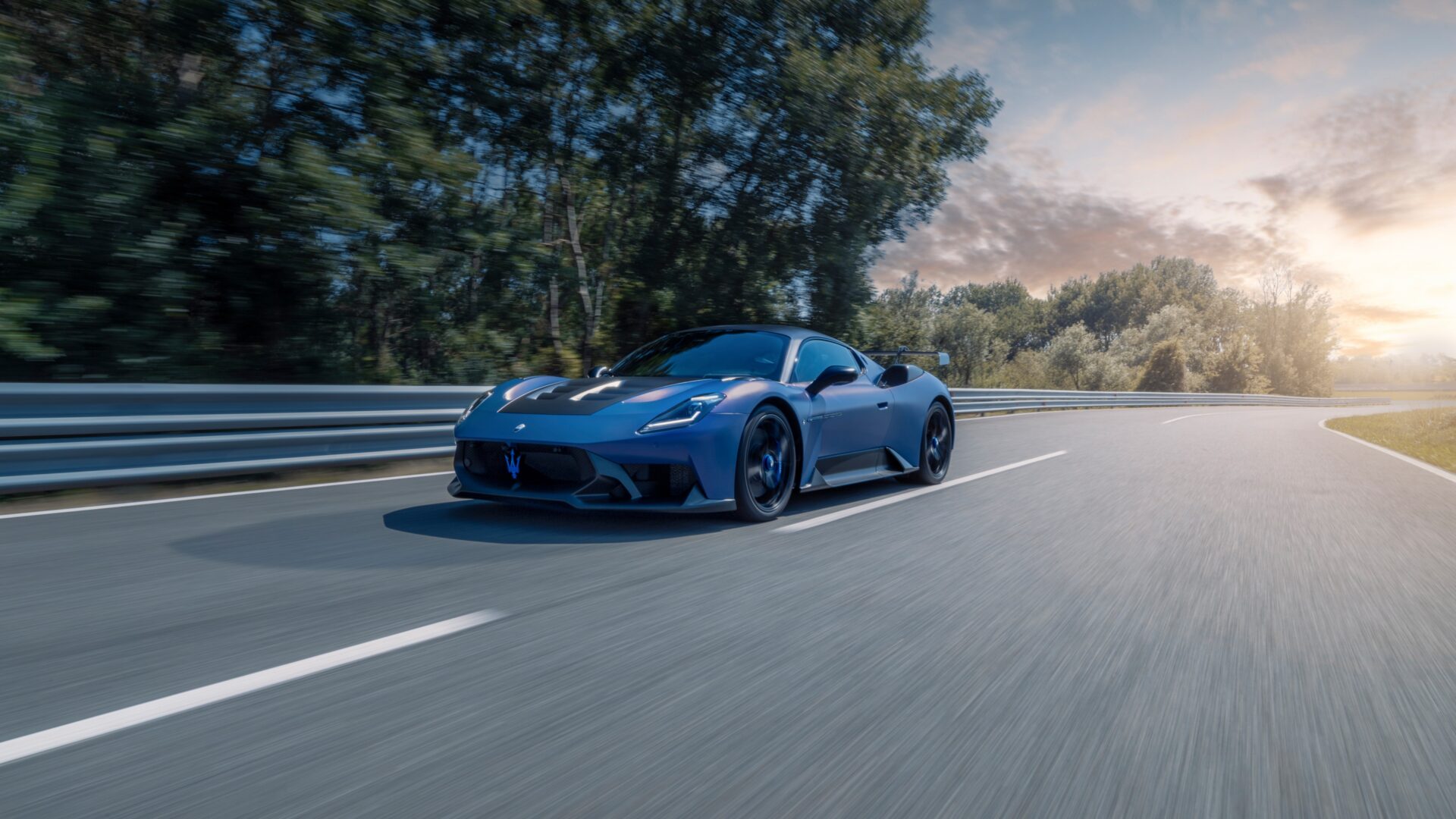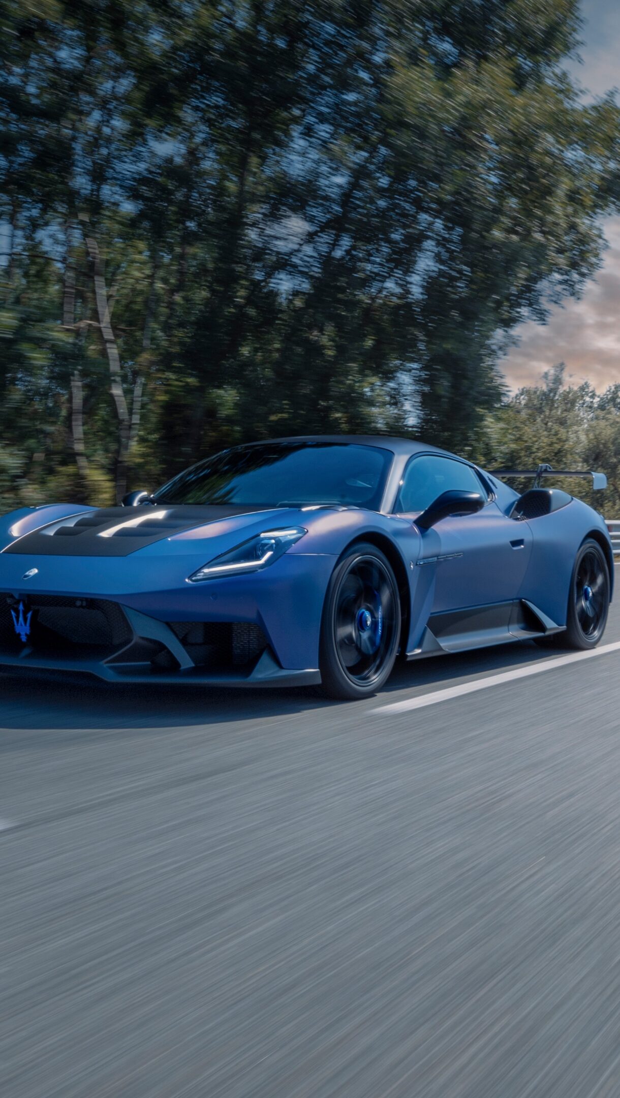 A stunning 4K wallpaper featuring the 2024 Maserati GT2 Stradale. The sleek design and aggressive stance of the car are highlighted, showcasing its luxurious and powerful presence on the road.