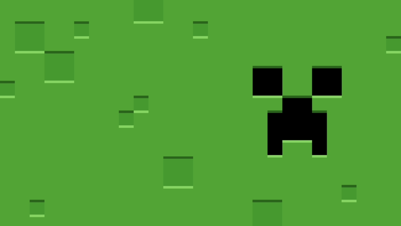 An iconic 4K wallpaper featuring a large, stylized pixel art Minecraft Creeper face set against a textured green background. The Creeper's signature black facial features sharply contrast with the dynamic array of blocky green tones that subtly shift across the digital landscape.