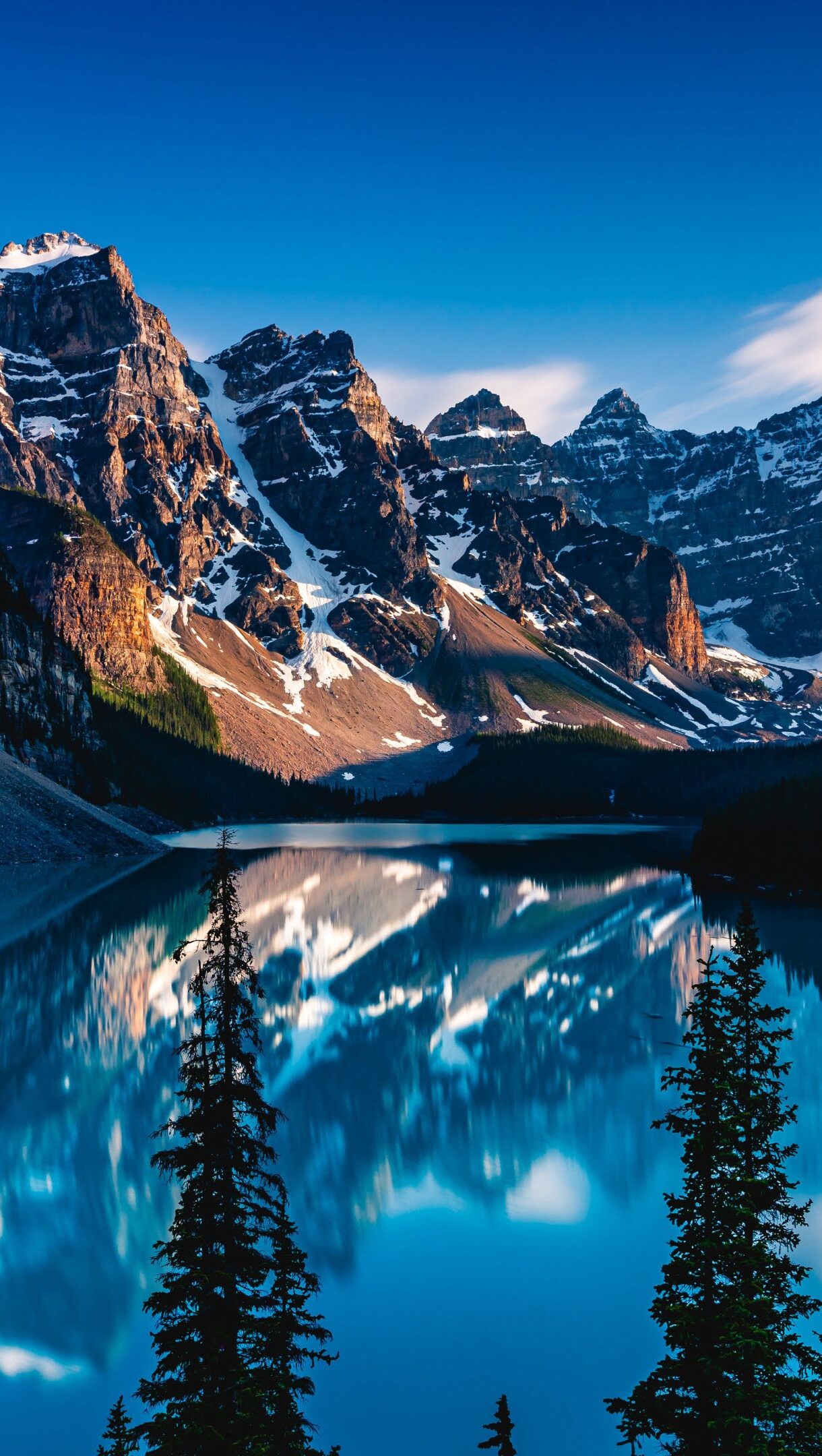 Immerse yourself in the serene beauty of Moraine Lake in Canada with this stunning 4K wallpaper. The turquoise waters, surrounded by the majestic Rocky Mountains in Banff National Park, create a breathtaking scene with perfect mountain reflections. Ideal for travelers and those seeking a desktop background that captures the essence of natural tranquility and scenic wonder. Simply click the download button to bring this masterpiece to life on your screen as a desktop wallpaper or save it for later in your picture collection.