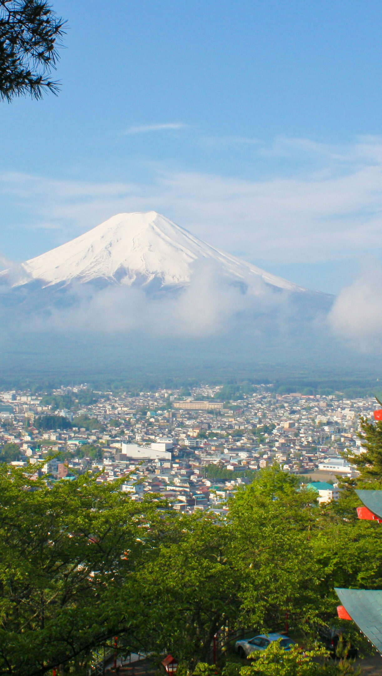 A stunning 4K wallpaper featuring the majestic Mount Fuji with a traditional Japanese pagoda in the foreground. This breathtaking scene captures the serene beauty of Japan's iconic mountain and architecture, making it an ideal backdrop for your desktop or mobile device.