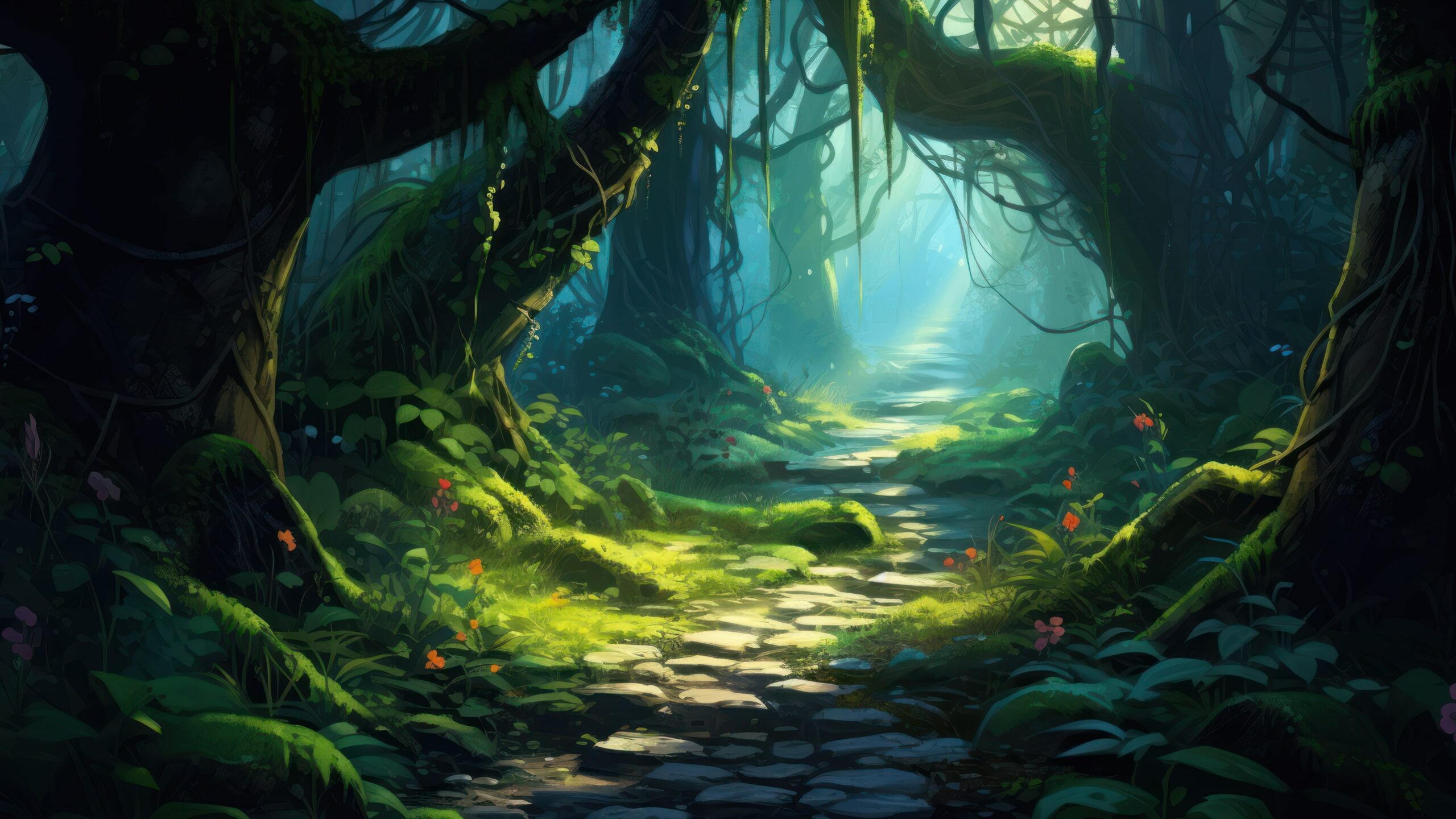Immerse yourself in the captivating beauty of a mysterious lush forest portrayed in this AI-generated 4K wallpaper. Perfect for high-resolution displays, it showcases the abundant foliage and captivating atmosphere of a mysterious woodland. Simply click the download button to bring this masterpiece to life on your screen as a desktop wallpaper or save it for later in your picture collection.