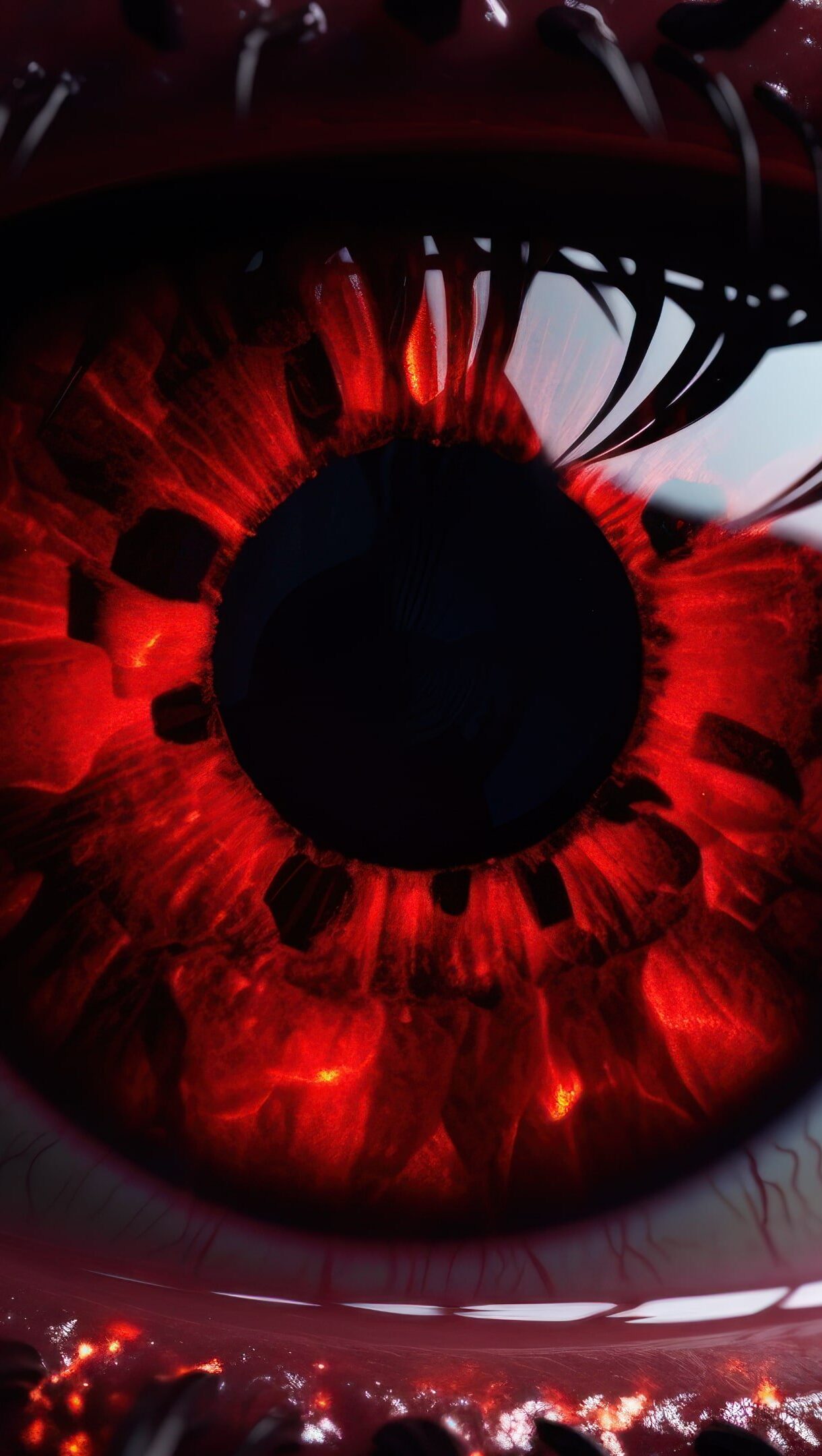 A captivating 4K wallpaper crafted by AI, featuring a mysterious red eye that draws you in with its enigmatic allure, making it the perfect addition to your desktop background. Simply click the download button to bring this masterpiece to life on your screen as a desktop wallpaper or save it for later in your picture collection.