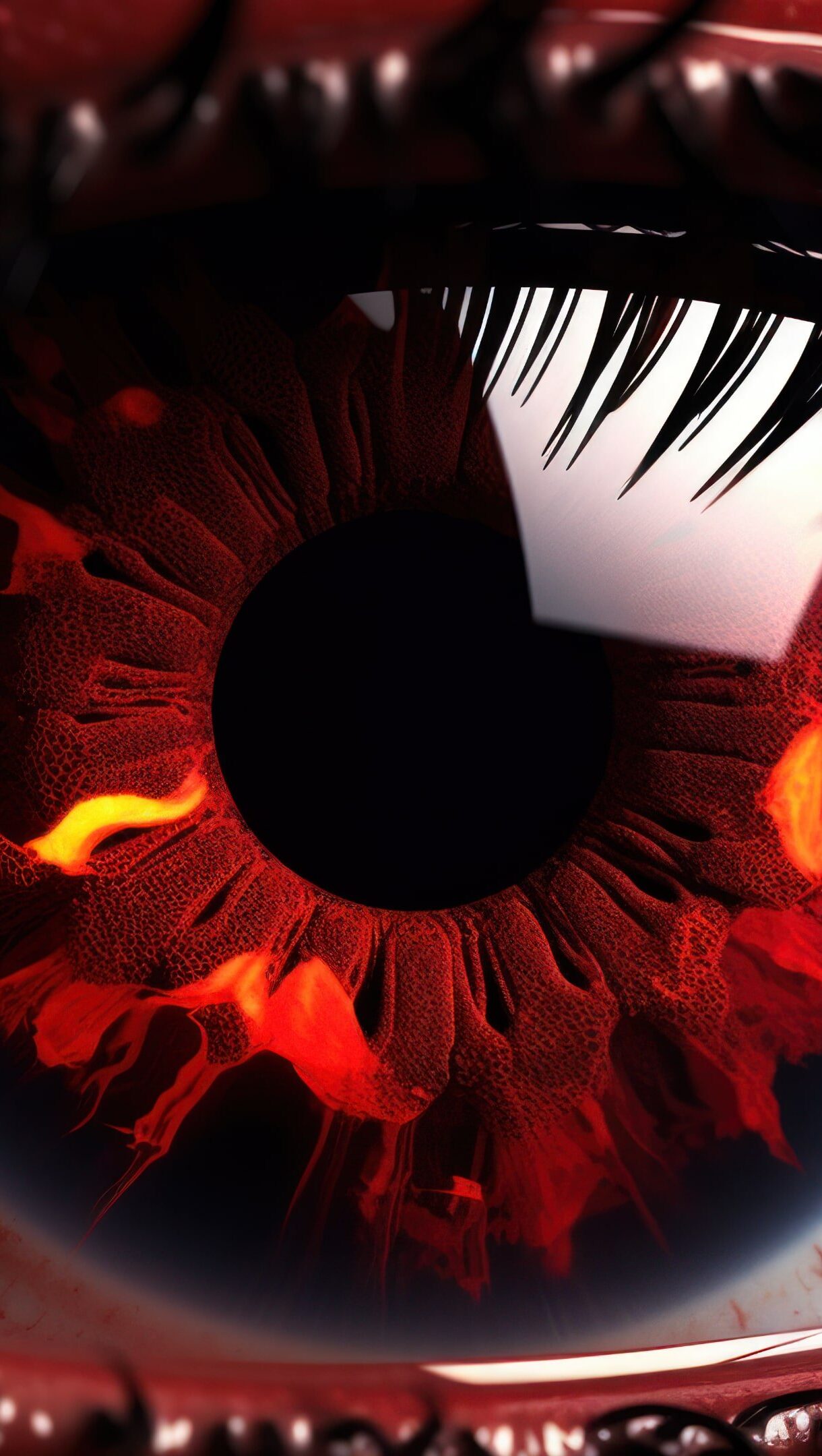 A captivating 4K wallpaper crafted by AI, featuring a mysterious red eye that draws you in with its enigmatic allure, making it the perfect addition to your desktop background. Simply click the download button to bring this masterpiece to life on your screen as a desktop wallpaper or save it for later in your picture collection.
