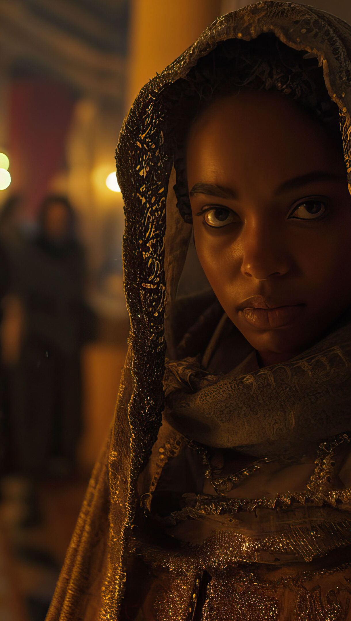 A mesmerizing 4K wallpaper captures the essence of a mystical evening in a grand ballroom, where ethereal lights dance gracefully, casting enchanting shadows. The scene exudes an air of elegance and magic, making it a captivating choice for your desktop or mobile wallpaper.