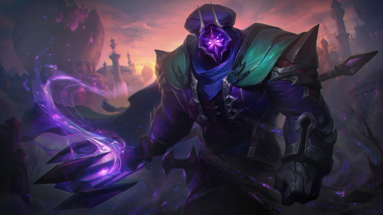 A breathtaking 4K wallpaper showcasing the formidable Nemesis Jax skin, featuring Jax, the Grandmaster at Arms, in a striking and menacing pose within the immersive world of League of Legends. Simply click the download button to bring this masterpiece to life on your screen as a desktop wallpaper or save it for later in your picture collection.