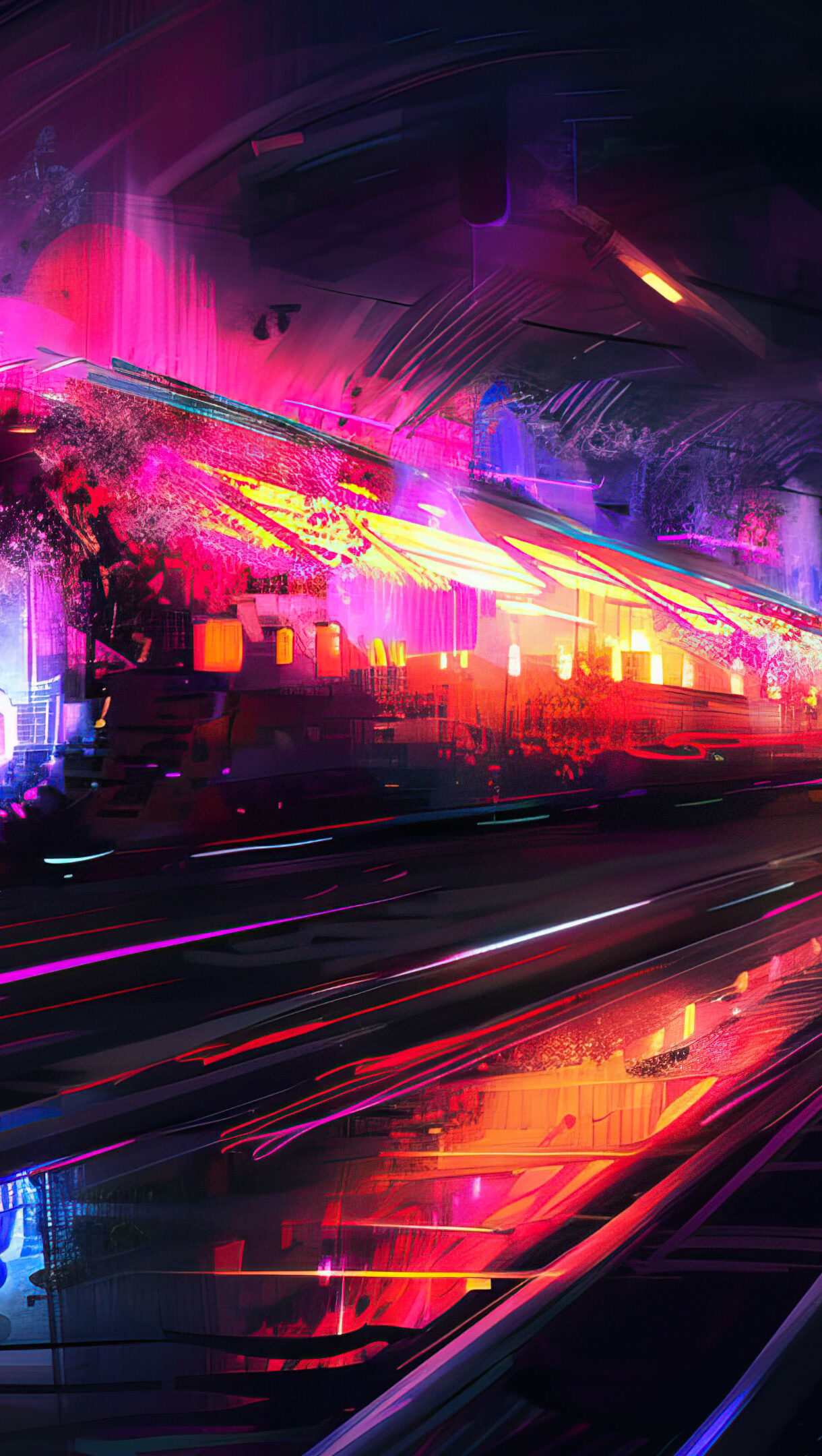 A stunning 4K wallpaper featuring a vibrant neon speed tunnel. The dynamic design, with its vivid colors and abstract patterns, creates a sense of rapid motion and energy, making it an ideal background for your desktop or mobile device.